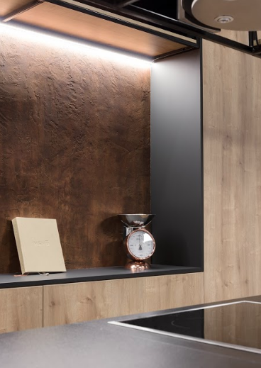 Érdemes figyelni az apró részletekre, tárgyakra, megoldásokra, mint a konyhában a fém edénytartó kosár, az arany színű virágcserép vagy a konyhai mérleg.