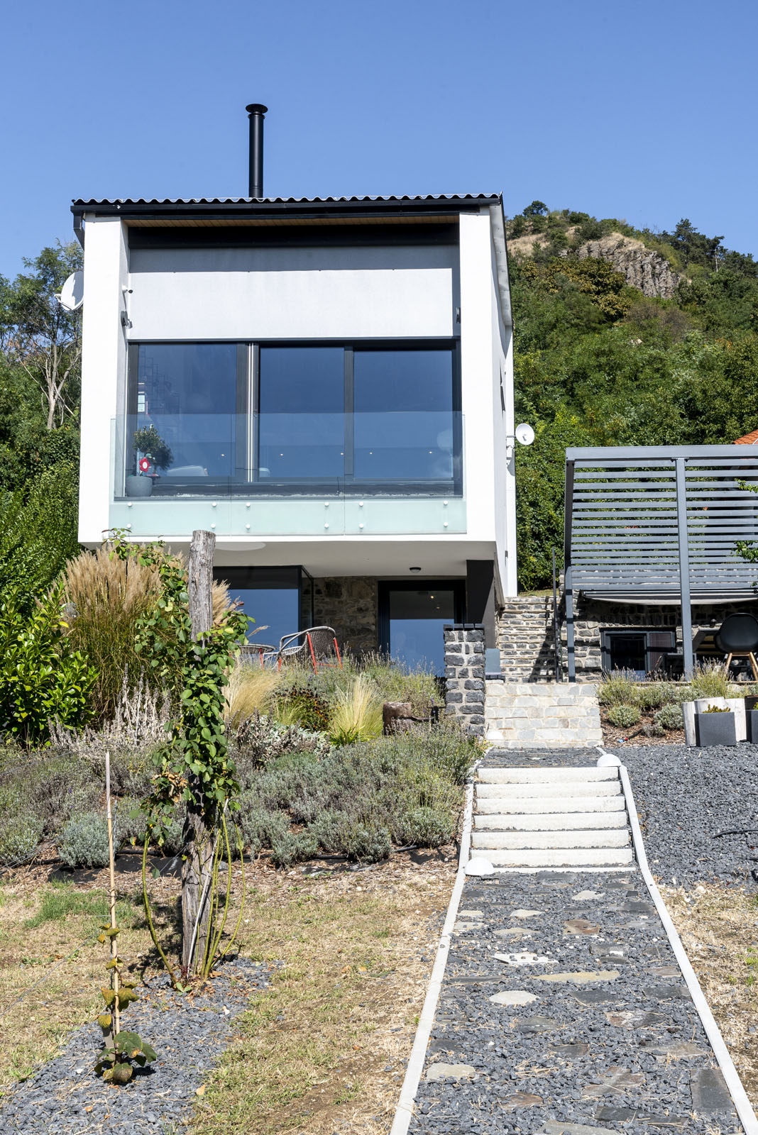 A Szent György-hegyi modernista nyaraló a tanúhegy házai között évtizedek óta különcként állja a rosszalló tekinteteket, felújított formájában ugyanakkor tökéletesen példázza, mennyi egyéniség és megmenthető lehetőség is lakozik azokban a modernista nyaralókban, melyek esztétikailag ma is értéket képviselnek. A meredek hegyoldalba vájt borospince – ahol eredetileg valóban borászati tevékenységet folytatott korábbi tulajdonosa – a térszinten teraszban végződött, és az erre ráhelyezett előreugró tömegben kaptak helyet a lakóterek, aminek köszönhetően a terasz félig fedett, félig nyitott lett.