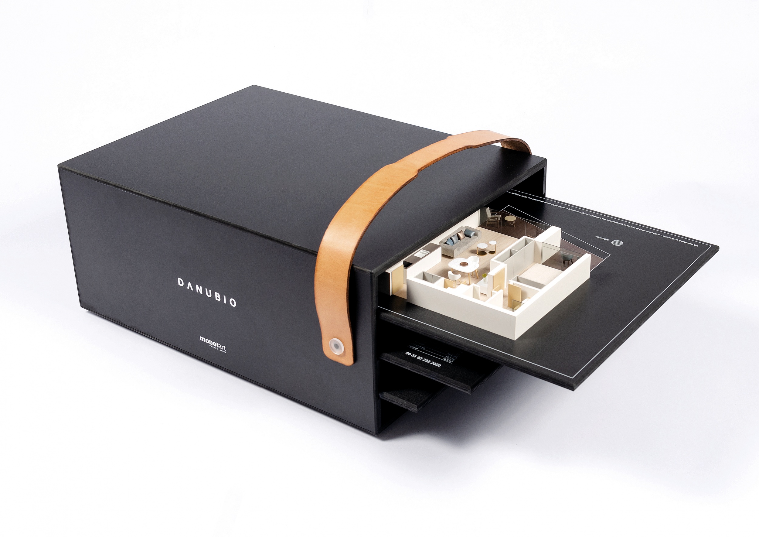 A DANUBIO 3 különböző lakástípusát bemutató, abszolút újszerű makettjével nyert rangos elismerést a Modelart Presentation, amellyel “Flet” névre keresztelt termékét mérette meg erős nemzetközi mezőnyben az építészeti modellezésre specializálódott soproni cég. Az Iconic Awards az építészethez holisztikusan közelítve díjazza a tervezés, a design és a kommunikáció leginnovatívabb eredményeit, olyan nemzetközi szaktekintélyek döntése alapján, mint Andrej Kupetz, a Német Design Tanács vezetője. A díjátadót október 8-án az Expo Real idején, a müncheni Die Pinakothek der Moderne épületében rendezik meg. A “Flet” egy táska fiókjából előhúzható, hordozható lakásmakett, amelyet a 3D-nyomtatás, CNC-marás és egyéb speciális technológiákkal állít elő a Modelart, a makett végső megjelenéséhez hozzáadva a legfrissebb belsőépítészeti trendek jellegzetességeit. A Modelart a projekt egységes és elegáns arculata miatt nevezett be a termékkel, amely nemzetközi szinten is elismerésre érdemesnek bizonyult. A DANUBIO a magyar ingatlanpiacon az elsők között rendelkezik ilyen, a lakásokat érzékletesen és valósághűen bemutató innovatív eszközzel.