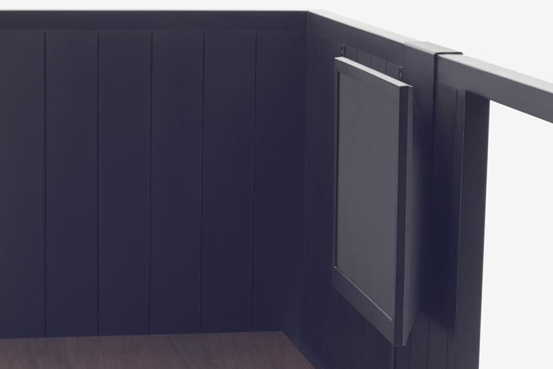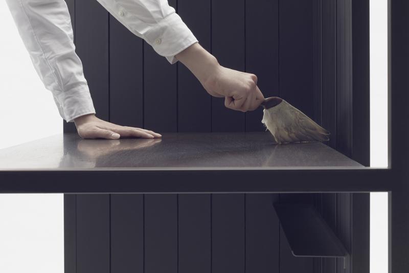 A magnetic “eraser dust tray” can be attached on the slit on the far side of the desk. So, it is easy to remove the tray discard the dust and replace it. This is another solution for Mr. Matsui, previously eraser dust pooled under the desk consequently damaging the hydrolysis vulnerable floor. While in this project the desk was specifically developed to meet the needs of a professional cartoonist who spends countless hours working laboriously at his desk, it also holds the potential of being used by business people and students. Therefore going forward this desk will