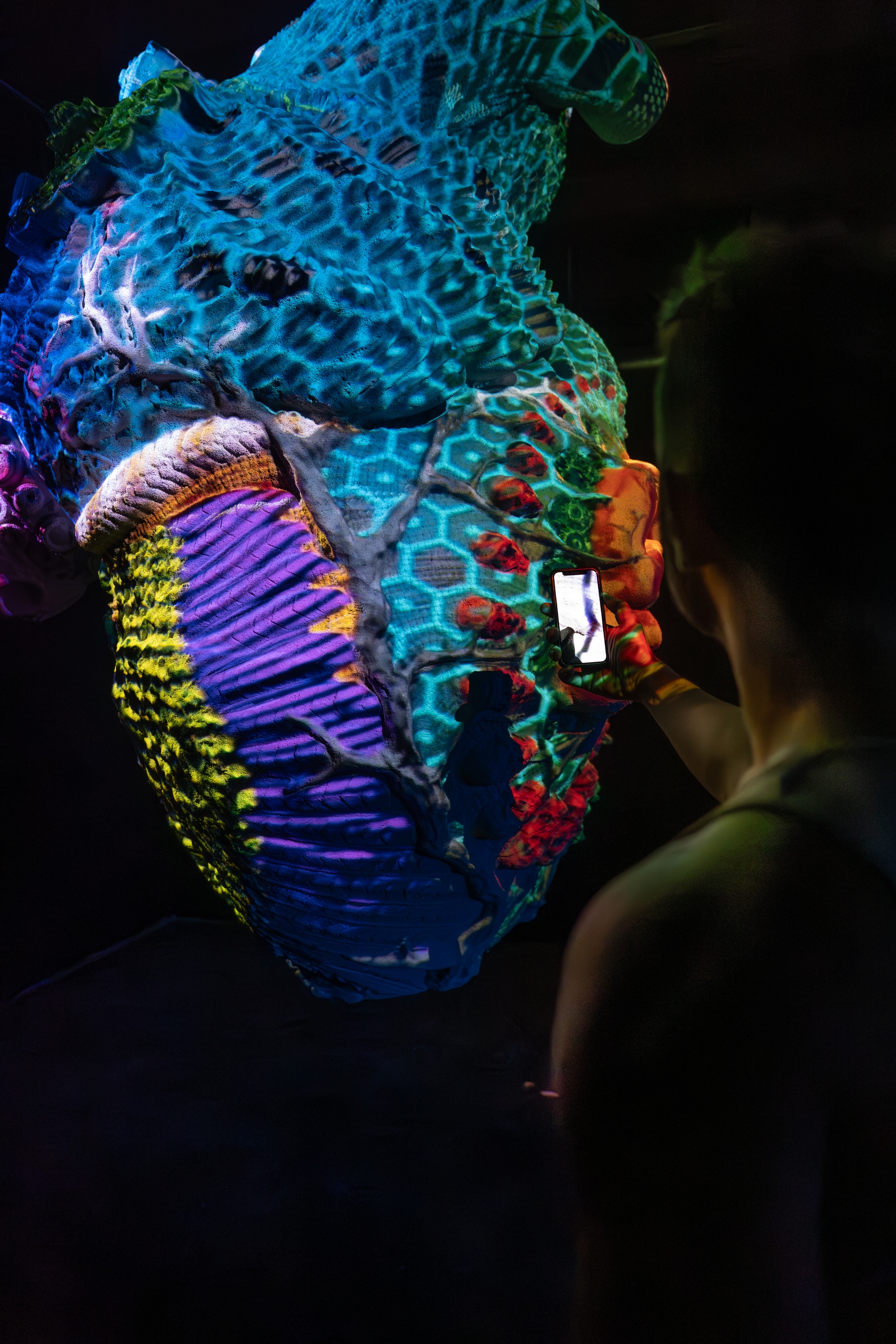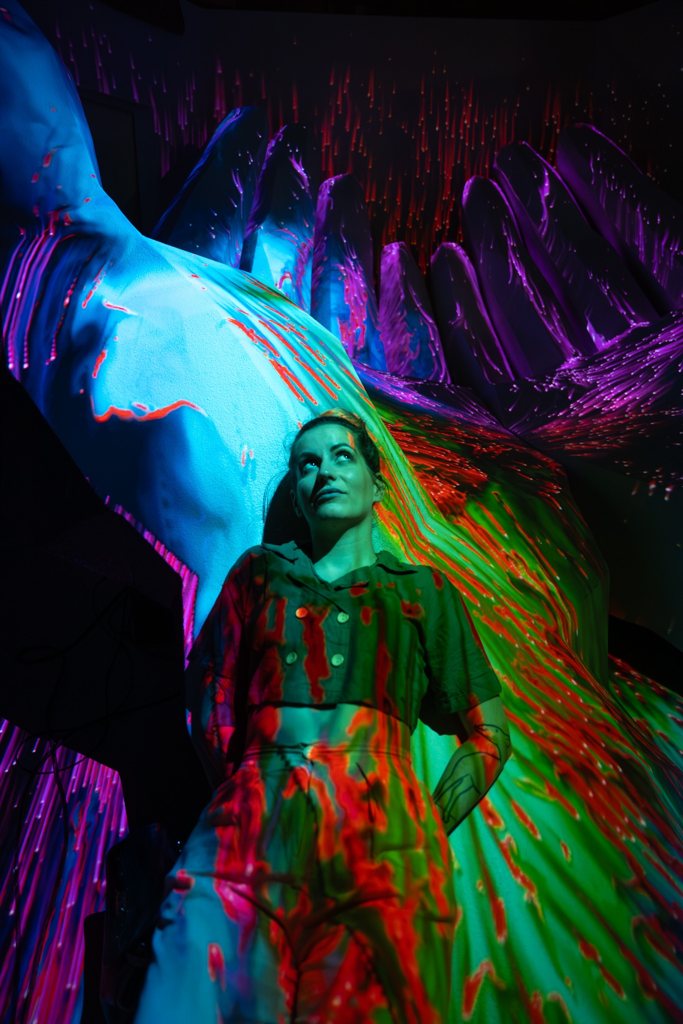 „A kiállításhoz 85 darab projektort, 5 km kábelt, csúcstechnológiájú médiaszervereket, érzékelőket és speciális hangszórókat, rezonátorokat használunk. Talán a legkomplexebb installáció a fő attrakció: a »The Garden«, ahol 17 projektor vetíti a teret, infravörös kamerák szolgálnak szenzorként, a padló interaktív, a tér közepén pedig egy ledes fényinstalláció, egy életfa található. Hang, fény és vetítés tökéletes szinkronban. Emellett az »Aedan« címmel látható lesz egy ChatGPT alapú, interaktív multimédia installáció. Az installáció a mesterséges intelligencia és az emberi kreativitás interakcióját járja körbe. Belépve a szobor érzékelő zónájába, egy mikrofonon keresztül bármit kérdezhetünk az entitástól. A szoborra mappelt képek az eredeti pixelhalmazból kiindulva, a néző szöveges promtjaiból hoznak létre a MI által generált tartalmakat”
