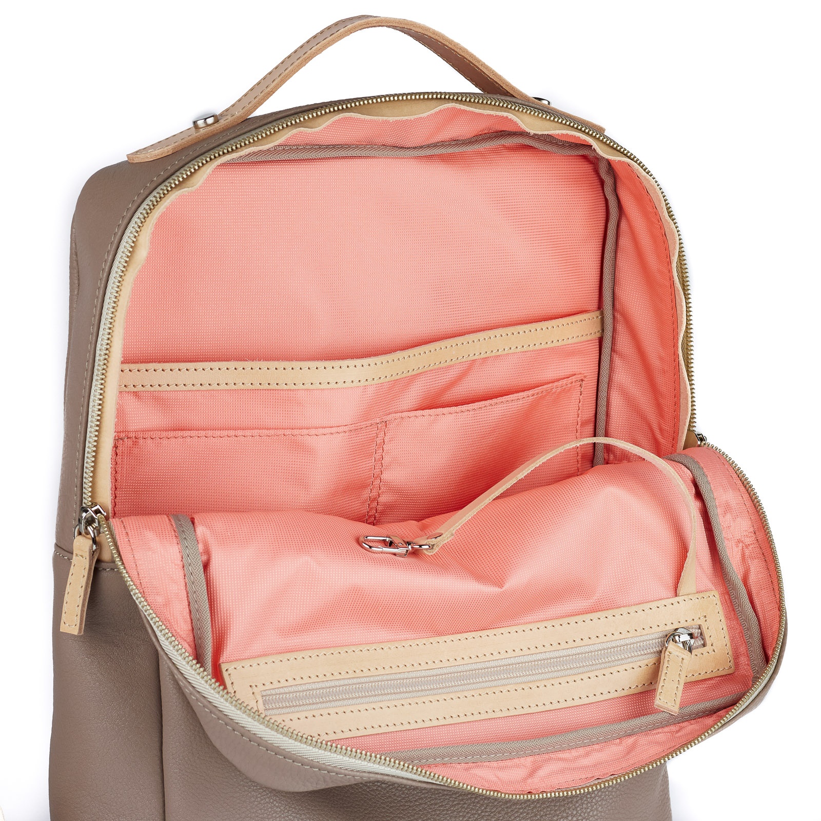 ESTHER hátizsákunkat igazi városi nőknek találtuk ki, akik megállíthatatlanul, végtelen lendülettel vágnak neki a napi kihívásoknak. Nem csak külső megjelenésére jellemző az egyszerű praktikum, hanem belső tereit is a jól szeparálhatóság és a rendszerezés igénye hatja át. Vízlepergető belső béléssel és számtalan zsebbel állja majd a kihívásokat. Kedvenc részletünk, a beépített kulcstartó, ami elengedhetetlen kelléke egy női táskának. Könnyedén elfér benne egy A4-es mappa vagy egy 15" Macbook, amihez külön szivaccsal bélelt zsebet készítettünk. Mivel minden, a hétköznapokban szükséges dolgot bele lehet pakolni, arra is figyeltünk, hogy a párnázott hátlapnak és a vállpántoknak köszönhetően kényelmesen oszoljon el a súly a vállakon. A klasszikus vonalvezetésű hátizsákot a márkára jellemző nyers növényi cserzésű bőr részletek teszik izgalmassá. Nem csak esztétikai, hanem funkcionális elemek is a táskán: megerősíti a leggyakrabban használt zsebeket és külön védelmet nyújt a cipzár alatt. Ezeken a felületeken a bőr napfény és a használatból eredő zsírosodás hatására enyhén sötétedik, így öltve egyedi jelleget minden egyes táskán.