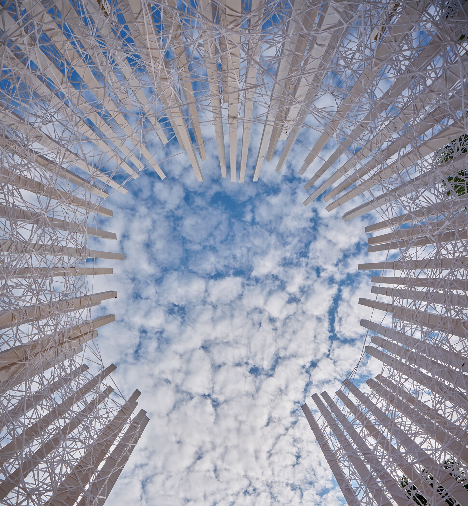 A LOOM tisztelettel adózik a helyszín textilgyártási örökségének, az építészeti formában újragondolva a szövőszék mechanikáját. A függőleges faoszlopok és a vízszintes gerendák a szőtt anyag lánc- és vetülékszálát idézik, míg a feszített textilszálak emelt platformot hoznak létre pihenésre és elmélkedésre. A LOOM egy egykori gyár területén található, és egyszerre menedék és szimbólum – a kézművesség, az emlékek és az átalakulás tapintható emléke.
