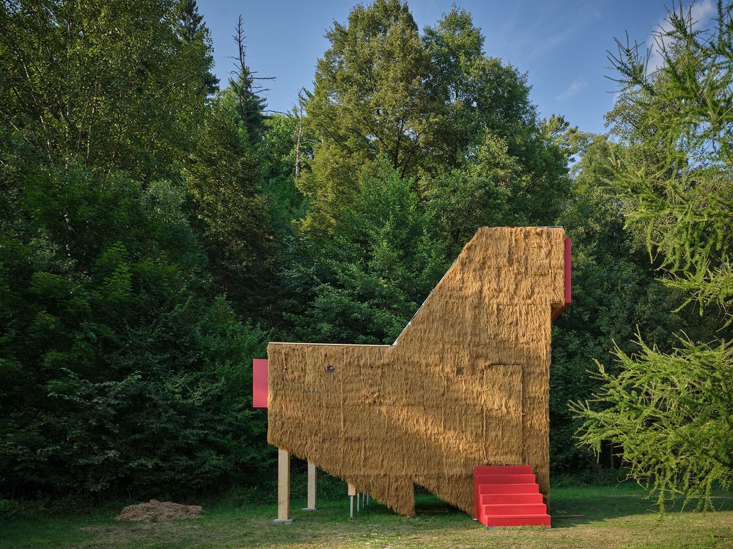 A The Chicken egy játékos, mégis funkcionális szerkezet a világ egyik legismertebb madarát alakítja át menedékké és megfigyelőponttá. Az erdő madarainak életét tükrözve megtervezett szerkezet arra invitálja a látogatókat, hogy feküdjenek le a csirke alakú nyakába, és a belső tükör segítségével kényelmesen figyeljék a lombkoronát és a fészkelő madarakat. A mohával borított külső felület rovarok és madarak élőhelyeként is szolgál, így ötvözve az építészetet a természettel. Szeszélyes formája emlékeztet arra, hogy a design nem csak egyenes vonalakról szól – örömöt, kíváncsiságot és mélyebb kapcsolatot is hozhat a minket körülvevő világgal.