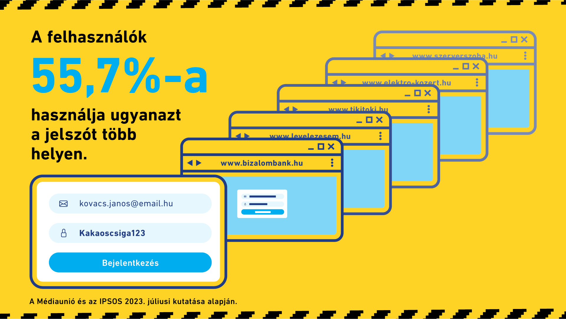 A magyarok többsége annak ellenére sem bízik az online adattárolásban, hogy ismerik az internetes adatvédelem alapvető technikai eszközeit – ez derül ki a Médiaunió és az IPSOS közös kutatásából. Érezzük tehát, hogy a fejlett biztonsági rendszerek ellenére valahol rés van a pajzson – de a legtöbben nem sejtjük, hogy mi magunk vagyunk azok. Mivel a különböző banki és ügyintézési rendszerek ma már többszörös védelemmel rendelkeznek, a kiberbűnözők közvetlenül a felhasználónál kopogtatnak. A Médiaunió idei kampányának célja, hogy minél kevesebben nyissanak ajtót.