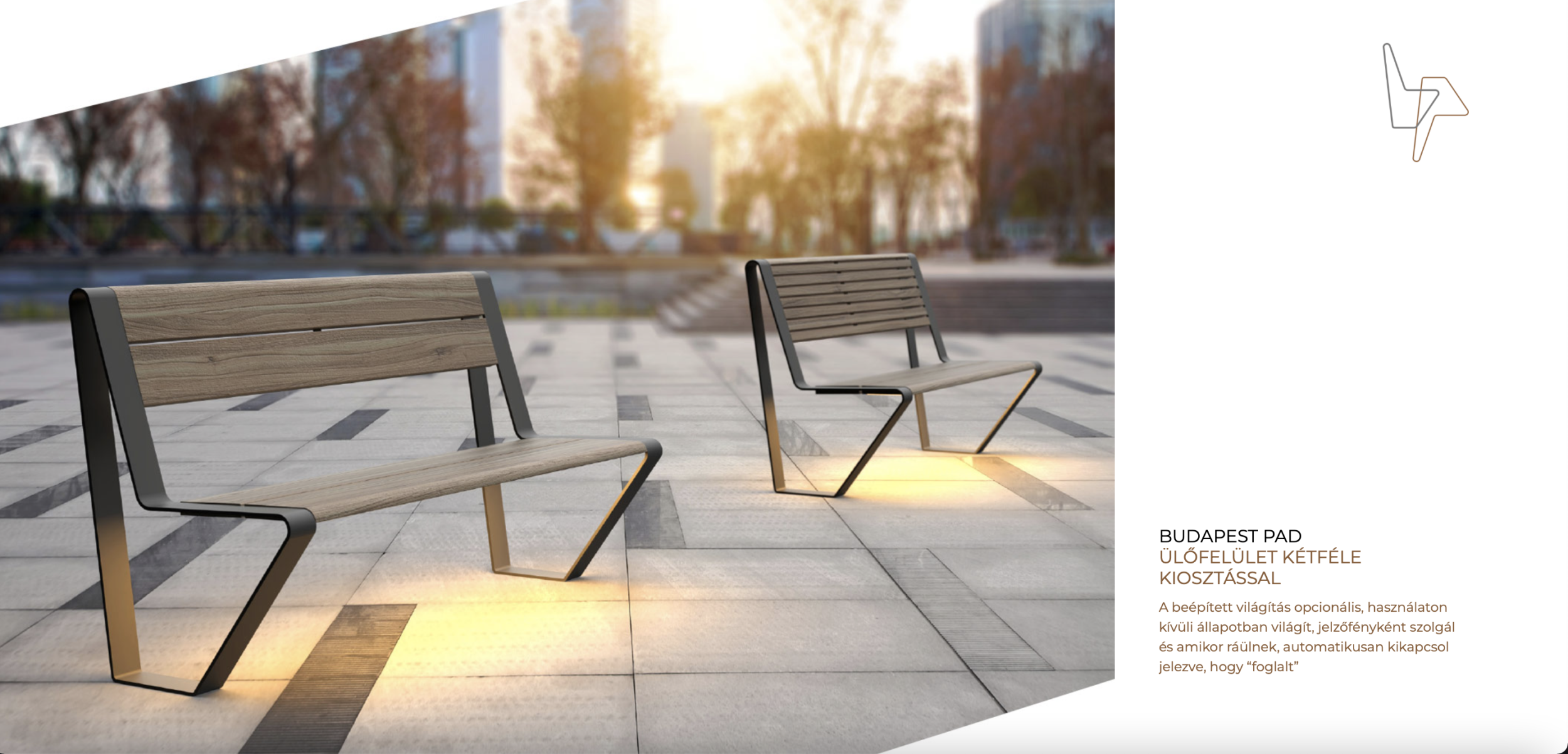 Ezt a bútorcsaládot egy építész barátommal, Kendelényi Péterrel közösen hoztuk létre. Valóban a Városliget-pad névre keresztelt pad volt az ihletőforrásunk, amit a koncepciója miatt tartottunk érdekesnek. Nem több mint egy fa deszka két pilon közé feszítve. Meglátásom szerint ez a minimál esszenciája. Ezt gondoltuk tovább, tisztítottuk le. A pad tartóelemeit fémből hajlítottuk meg, az ülőfelületet pedig fából készítettük el, többféle felületkiosztásban. Terveink között szerepel, hogy a tartószerkezet világítson is, illetve telefon töltésére is alkalmas legyen, megfelelve a 21. századi igényeknek.