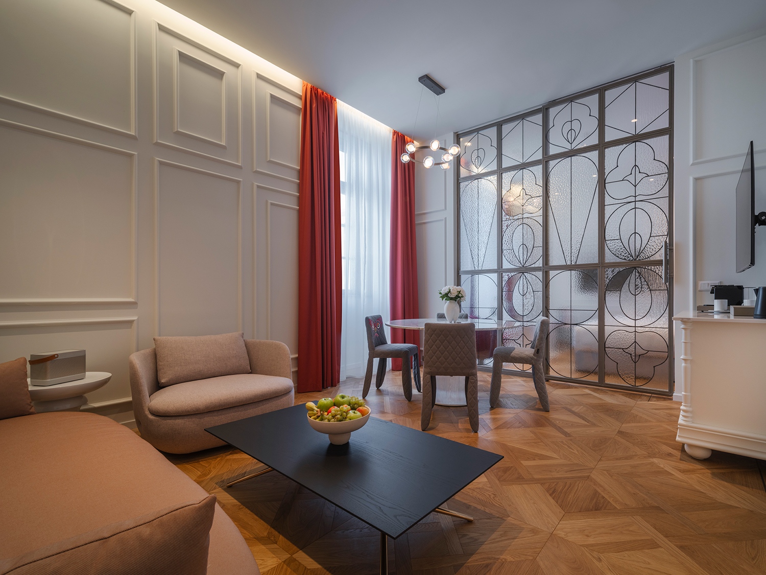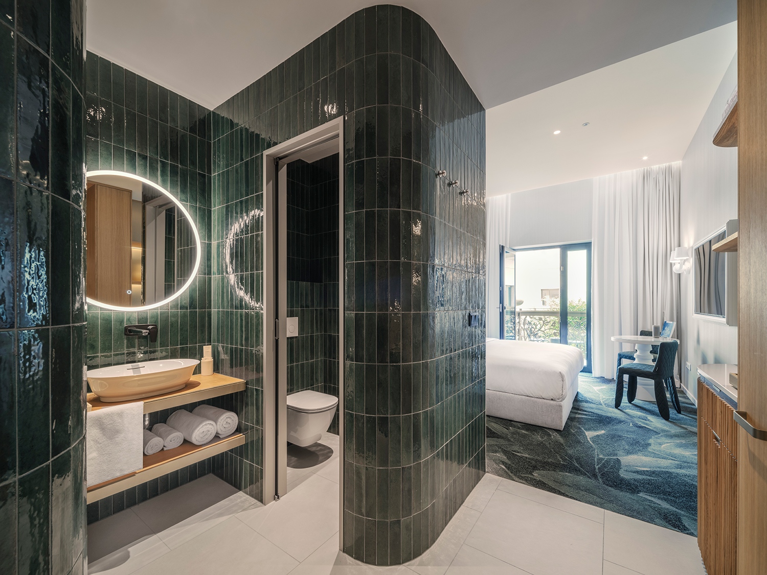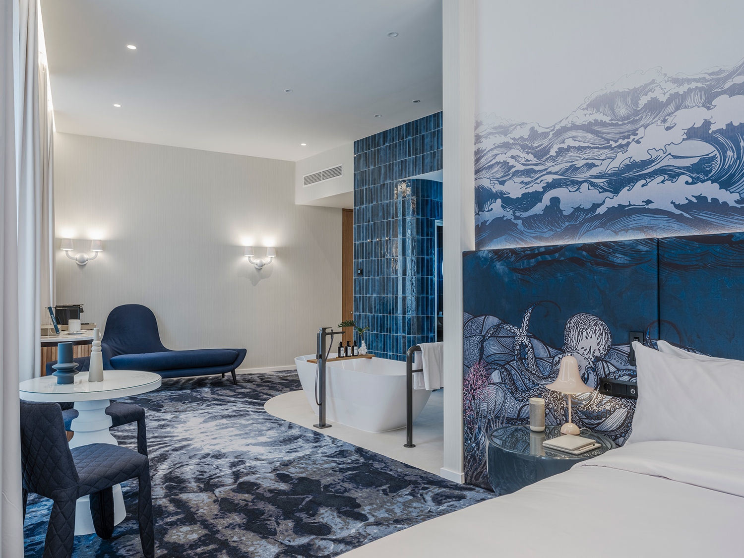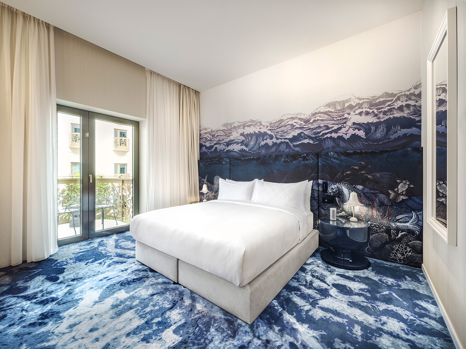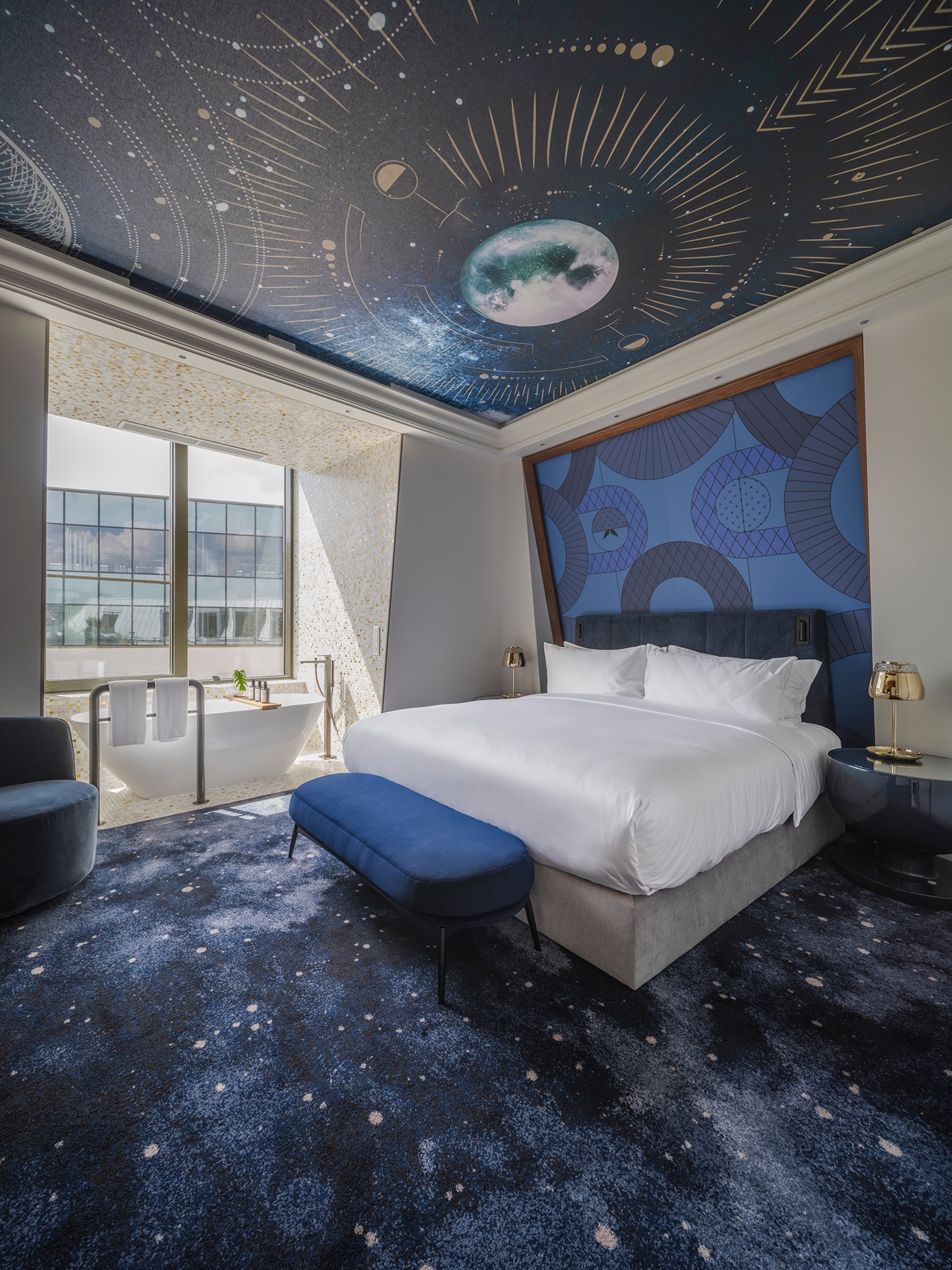 Összesen 127 szoba került kialakításra a hotelben, nagyjából 40 különböző alaprajzi elrendezéssel. Az altípusokra az NSN Mérnöki Iroda szabta rá a Marcel Wanders Studio terveit. A kék és zöld színek dominálta szobákban rengeteg egyedi megoldással találkozunk mind faldekorációk, mind egyedi asztalosmunkák tekintetében. A legfelső szint két lakosztályának összetett designja a kozmoszt jeleníti meg.