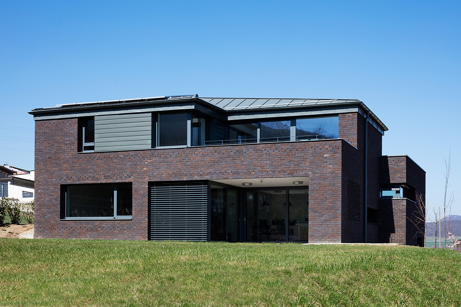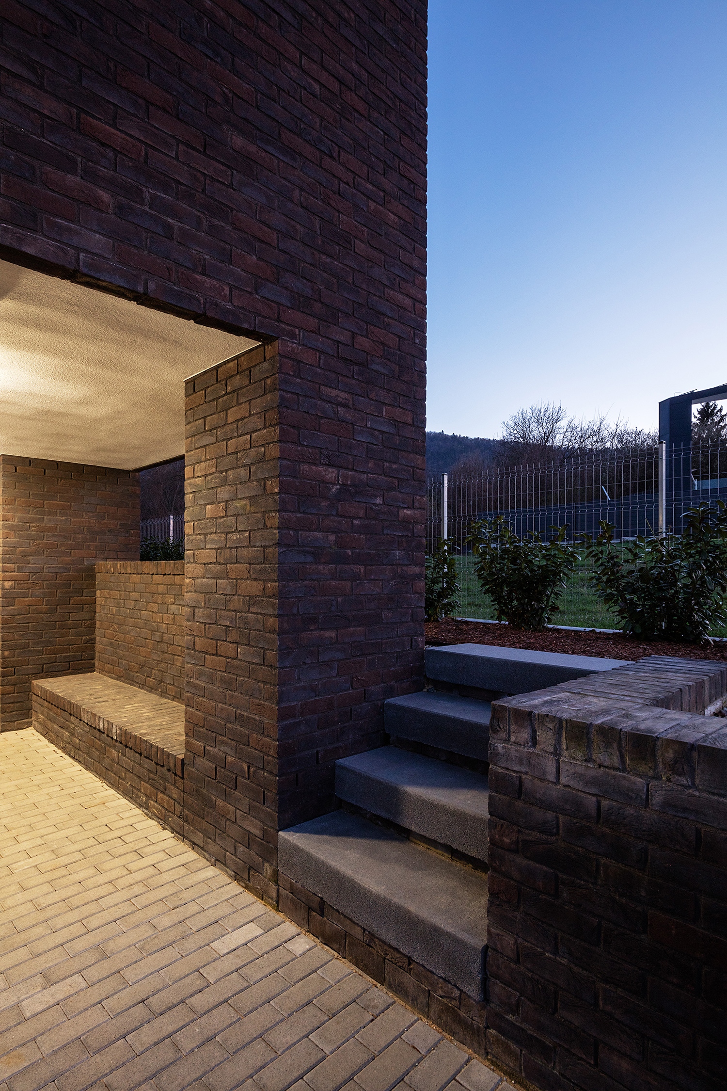 A párhuzam leginkább abban áll, ahogyan Gutowskiék a „tömörséget”, az anyagból sugárzó sűrűséget és plaszticitást kezelik. Zárt képleteket látunk, ahol a tégla jelenvalósága dominál. Erre egyébként szinte csak ez a vetett, grafitszürke, erezett, ráncos felszínű tégla alkalmas igazán. Nem nosztalgikus, nem húz vissza az időben és valódi, erős kisugárzású matériaként hat. Ráadásul a szürke fémek, ablakkeretek, zsaluziák, fémtetők különös kapcsolatba képesek kerülni ezzel az építőanyaggal. Személy szerint e sorok írója egyébként is ádáz kritikusa azoknak a téglaházaknak, ahol a homlokzati karakter, textúra pusztán felmutatásszerű, mintsem lényegi tartalmat hordoz. Sokan esnek ebbe a hibába.