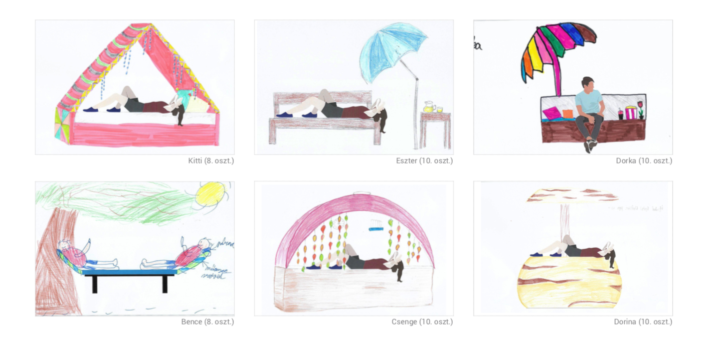 Workshop keretében ülőhelyi alternatívákat mutatott a Jókai Mór Gimnázium tanulóinak, és megkérdezte őket, melyek tetszenek nekik legjobban az általa képeken bemutatott lehetőségek közül. Egy-két példa a kapott visszajelzésekből: