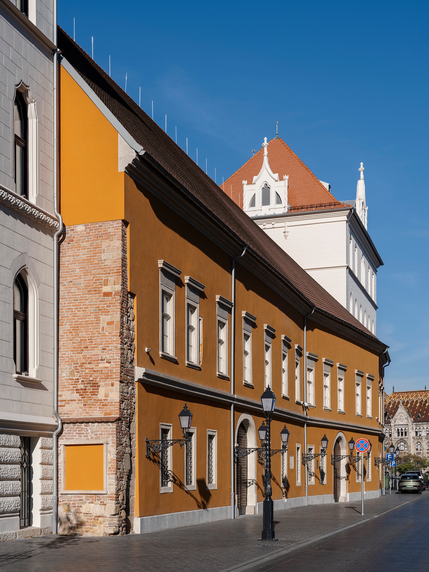 E cikk keretein belül nem törekedhetek teljes, átfogó feldolgozásra ilyen nagy méretű épületnél. A rehabilitáció fogalma felől közelíteném meg inkább, amely kifejezést itt használva, a felújítások terminusát is kutató Zsembery Ákost valószínűleg jól magamra haragítom. Ő ugyanis e szót a kortárs építészet zsurnalista irodalmában látja divatosan elterjedtnek hibás szakkifejezésként. A helyzet azonban az, hogy jelen esetben az épület java része állt még. Bár műemlék volt, pont, hogy műemléki részeinek jelentős hányadát vesztette el, és igazából ezek a hiányok kaptak csak 1:1-es rekonstrukciót. A legfontosabb azonban, hogy magát az értelmét, a jelentőségét is rehabilitálták egyetlen konkrét funkció integrálásával – még ha ez végül az eredeti elképzelés helyett a Belügyminisztérium is lett.