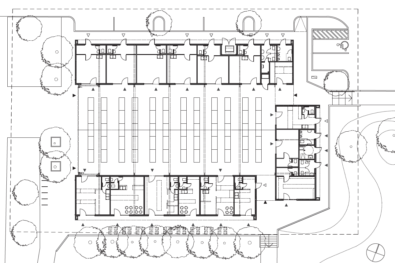 Az új létesítmény funkcionális programja a szabadtéri piac műfaji határait a lehetőségek határaiig kitolva igyekszik kihasználni a rendelkezésre álló, korlátozott helyet. Az őstermelői és kiskereskedői standokat a három pavilon-blokk U alakot képező együttese öleli körül, összesen tizenöt, egységes arculatú kis üzlettel, melyek egy része – pékség, kávézó – kívülről is megközelíthető, vagyis a belső árusítócsarnok zárása után is nyitva tarthat. A központi tér az asztalok áthelyezésével rendezvényhelyszínné alakítható; a megnyitás óta több zenei és más esemény zajlott itt, a piac közösségi-kulturális célú használata új impulzust adhat a helyi kötődés erősítéséhez – az alvóváros urbanizálódásához.