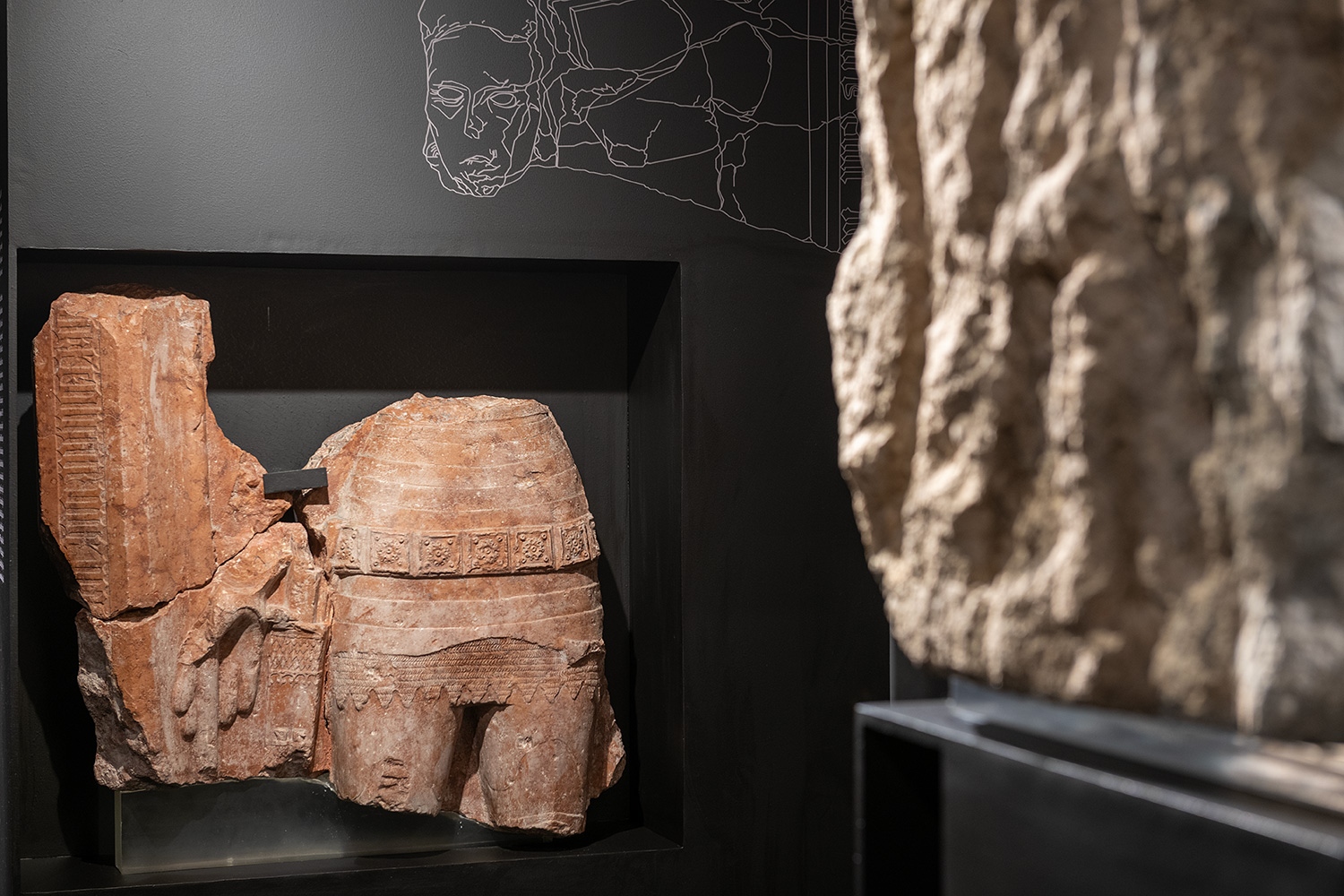 Székesfehérvár forgalmas Várkörútján, a romkerttől egy saroknyira feltűnés nélkül simul az utcaképbe az új múzeum. Ha bármit a szemére vethetünk is a projektnek, akkor talán ez a feltehetően szándékosan eszköztelen utcai nézet lehet az – a tartalom nyugodtan elviselt volna harsányabb „kirakatot”. Az új tárlat kevés médiafigyelmet kapott, dacára annak, hogy a szakma elismerte kvalitásait: a Média Építészeti Díjának versenyében 2024-ben ez a projekt nyerte belsőépítészet kategóriában a díjat, idén áprilisban pedig ICOMOS-díjat kapott. Nehéz különválasztani, szakmák szerint szétszálazni a projekt elemeit: az építészet, belsőépítészet, a kiállítás anyaga és annak installálása, a grafikai elemek, a középkori kőanyaghoz társított kortárs művészeti reflexiók és az általuk életre kelt középkori szellemiség együtt felelnek a hatásért, amely egyszerre redukált és teátrális – hangozzék ez bármilyen ellentmondásosan.