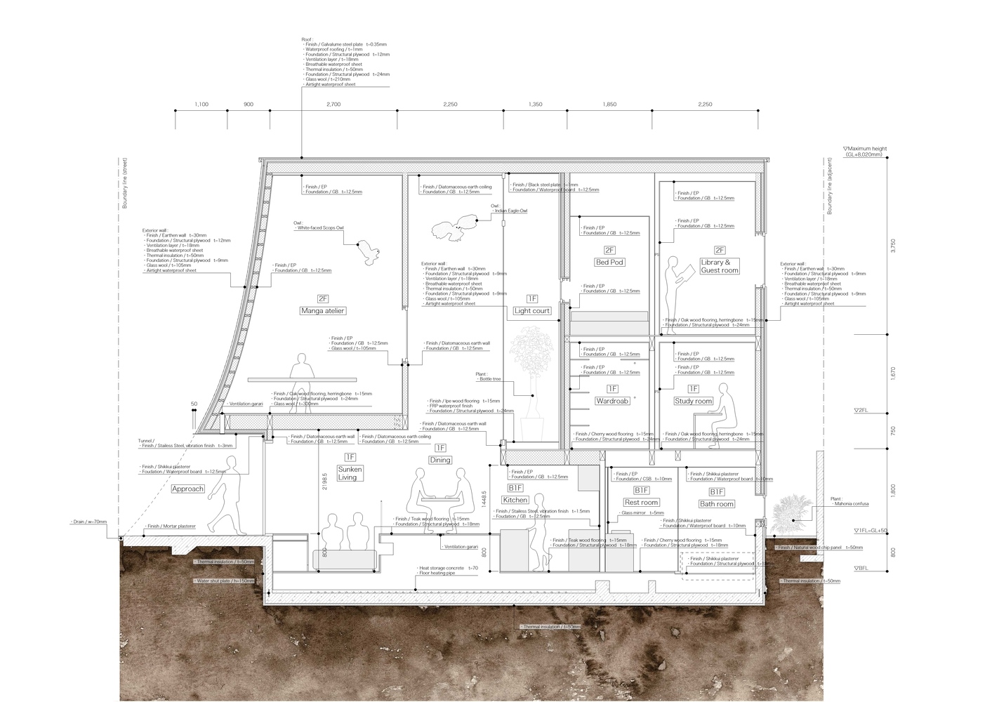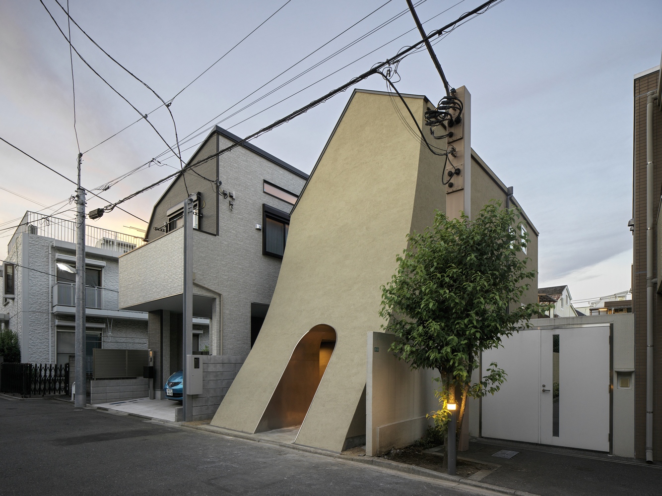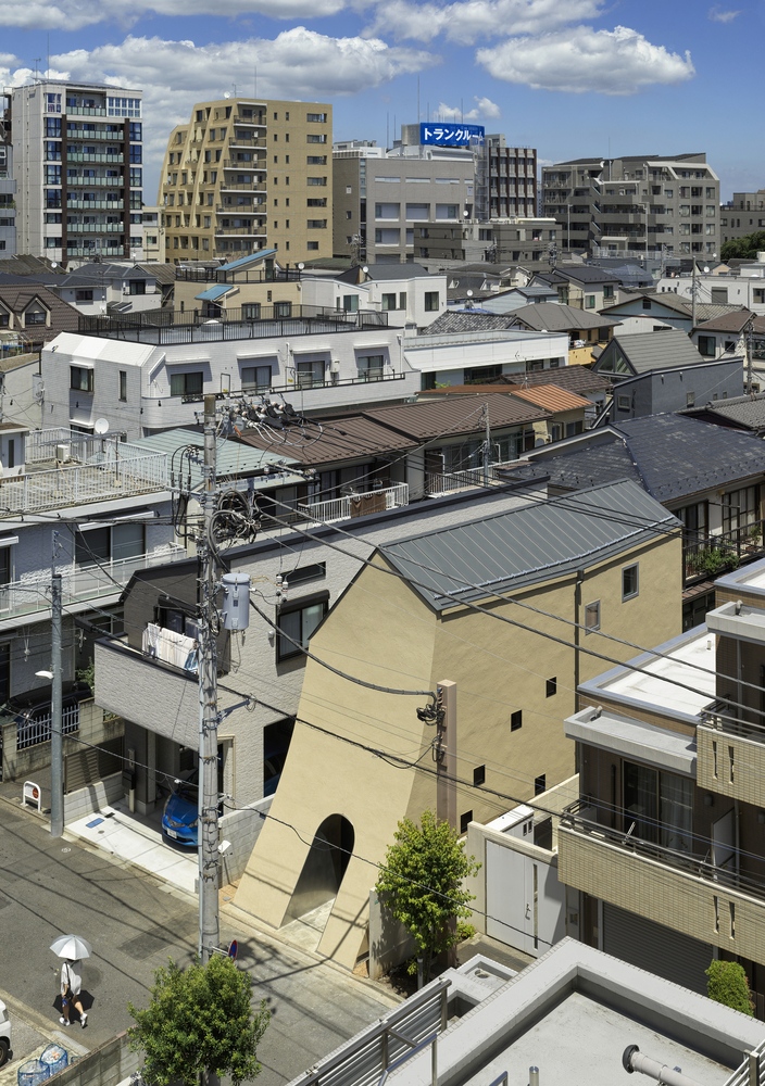 Faház Tokió kellős közepén. Görbe vonalai mintha egyenesen a mesék világából léptek volna elő. A Tan Yamanouchi & AWGL által tervezett szinteltolásos lakóházban egy feltörekvő manga művész él a párjával és két bagollyal.