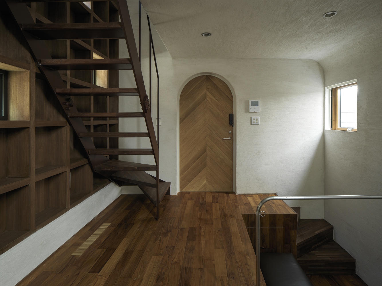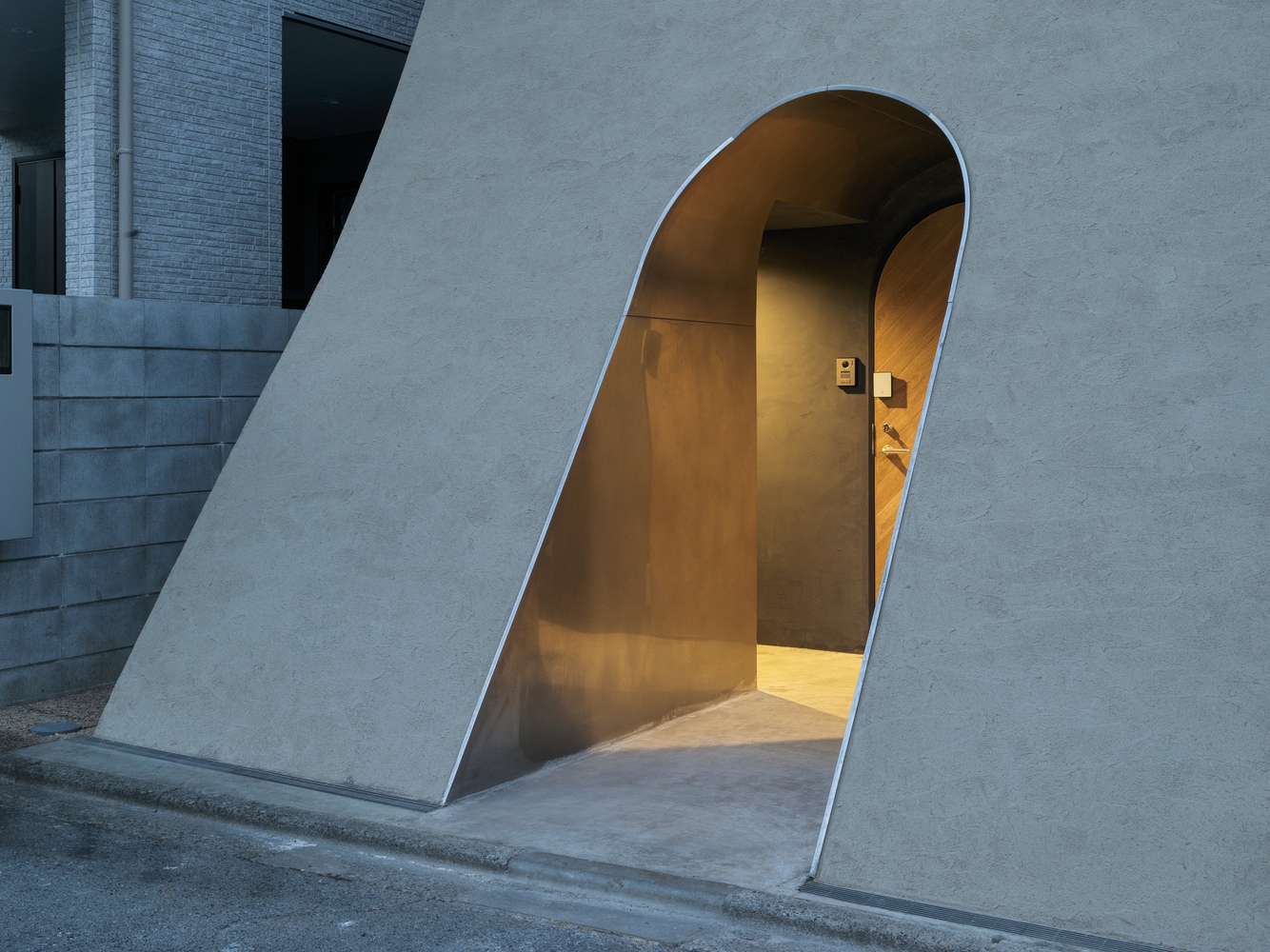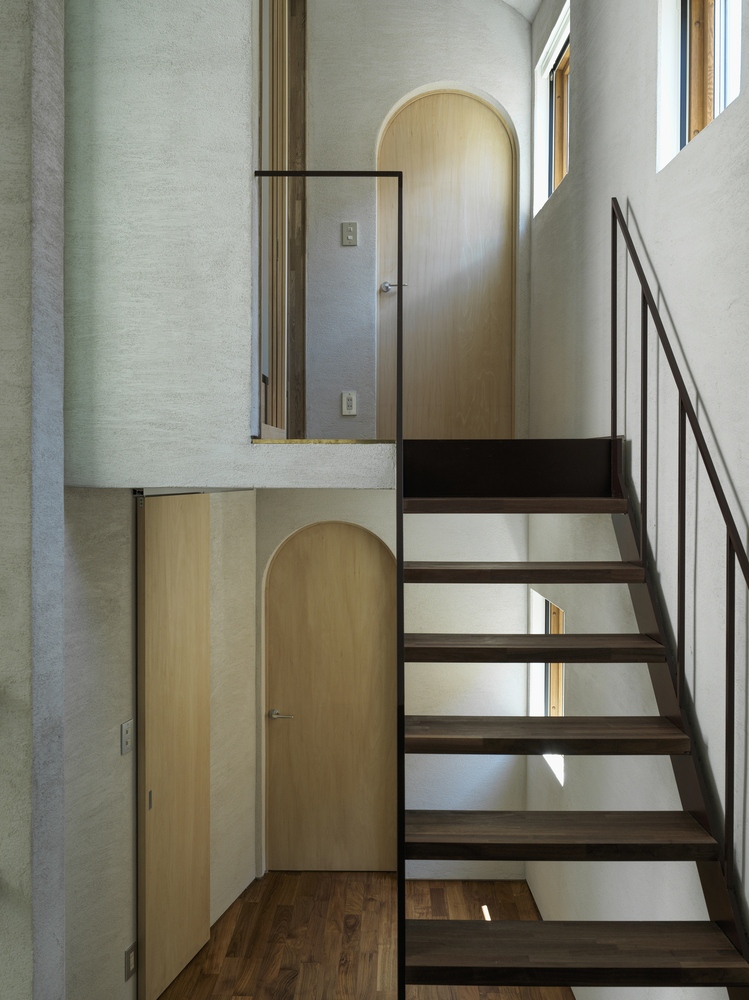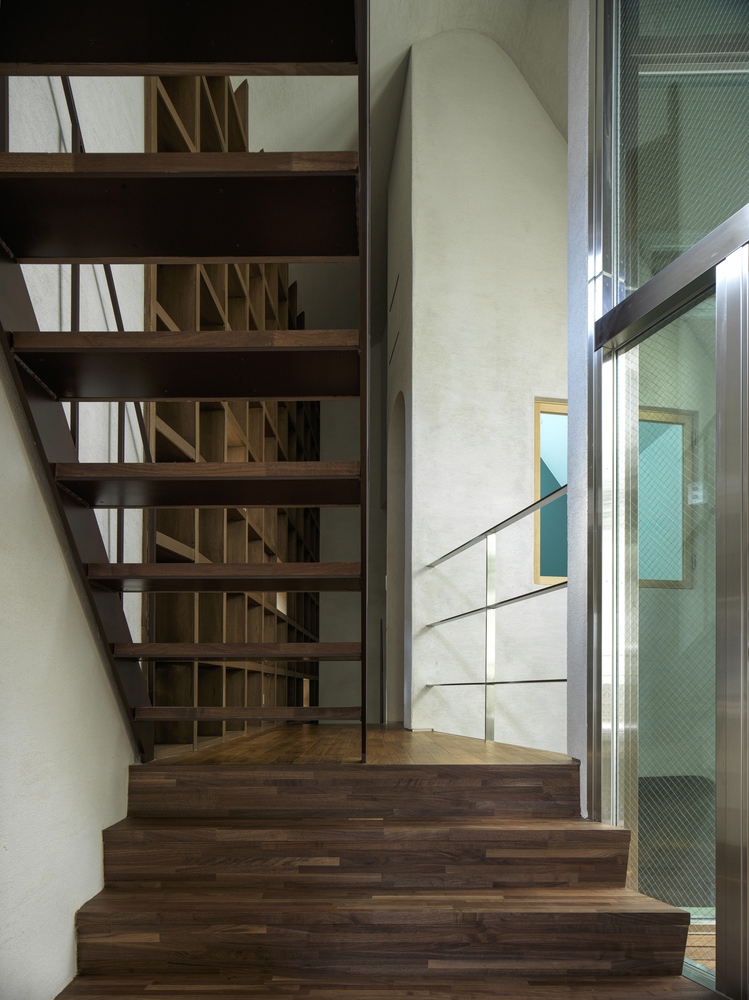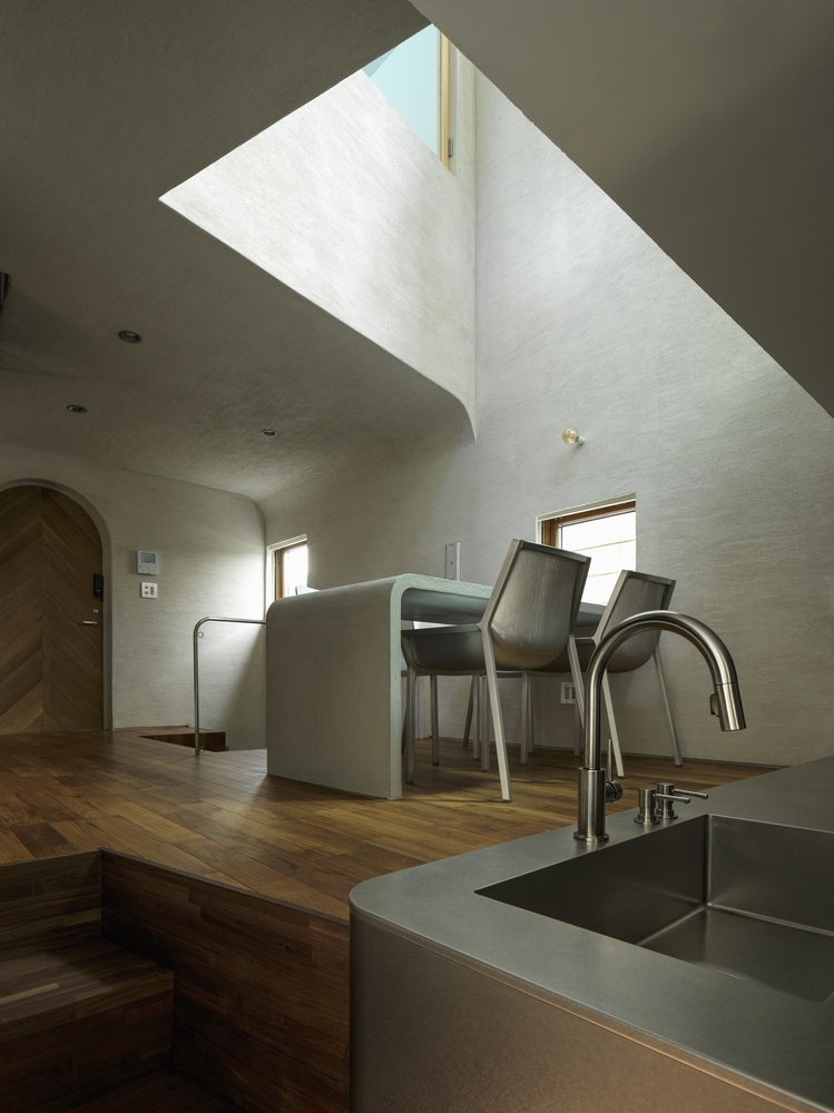 A tervezőtől három dolgot kért a szokatlanul kicsi és keskeny telken építkezni szándékozó művész: a lakás tudja szolgálni a teljes alkotófolyamatot a tervezéstől a megvalósításon át a sajtótájékoztatókig; a külvilág felé zárt legyen, belső kialakítása viszont minden szögletével a kreativitást inspirálja. Így született meg a zsúfolt tokiói utcasorban a sok szögletes épület között íves falával szinte a talajból kinövő iciri-piciri meseház, amely a régi japán elvet követi: kicsivel a föld fölött jár