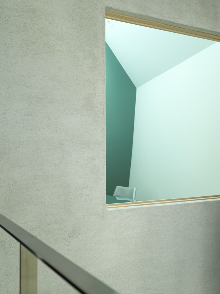 A ház kontrasztos hatásokkal izgalmassá tett áramló térbeli magjának feladata, hogy elkülönítse a privát és publikus tereket, aszerint, ahogy az épületben folyó művészi munkafolyamat épp megköveteli. A szeparálás nem falakkal történik, hanem a fény és árnyék, a térszintek váltakozásának eredménye. A flexibilis használatra lehetőséget adó térstruktúrát a tervező maga „medencék és partok” rendszeréhez hasonlítja. A ház nem csak az utca felől tűnik úgy, mintha egy mesekönyvből lépett volna elő, belül is Chihiró szellemországában érezheti magát a látogató: a tér ebben a házban testi tapasztalattá válik.