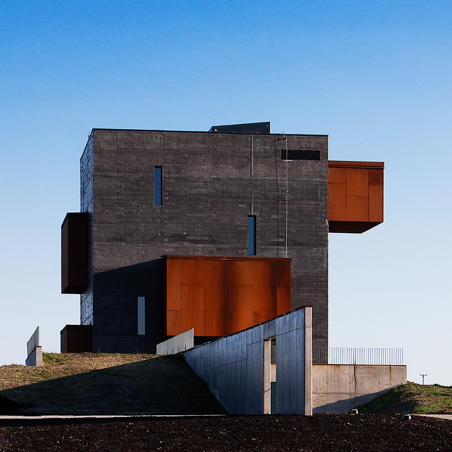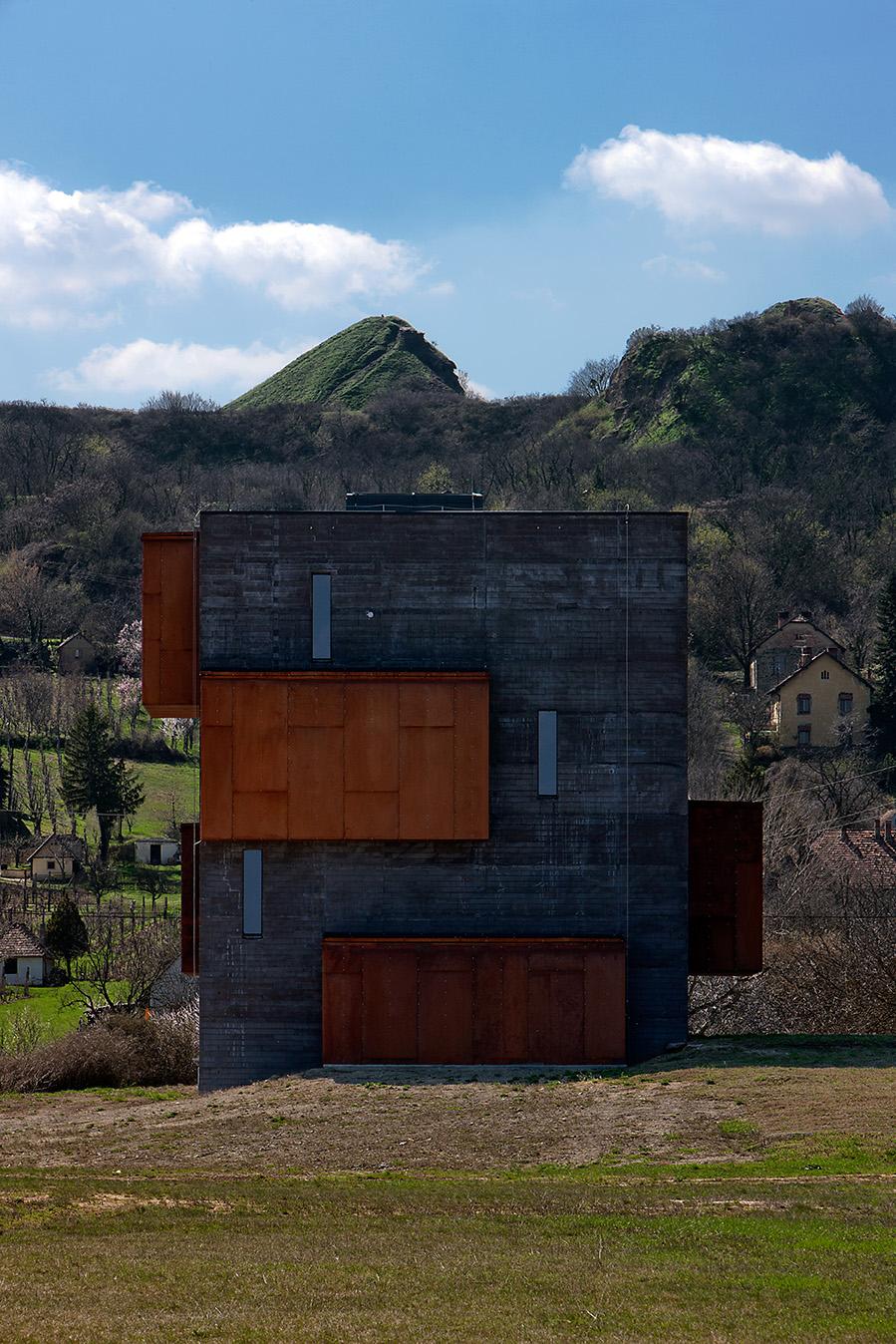 A beton tudatos alkalmazásának kiemelkedő magyar példája a Földes László által tervezett „vulkánmúzeum” erős szimbolikával és építészeti mondanivalóval bíró épülete. Ő sem új darab, 2012-ben adták át, de mivel Celldömölk a bűnös Budapestről nézve nincs a szomszédban, nem árt emlékezetünkbe idézni. Ebben a házban a beton mellett a Corten lemezé a főszerep, így ha megkésve is, nem csak az áprilisi beton, de a márciusi fém tematikánkhoz is kapcsolódik. A cikk nyomtatásban az OCTOGON magazin 2013/3-as lapszámában jelent meg.