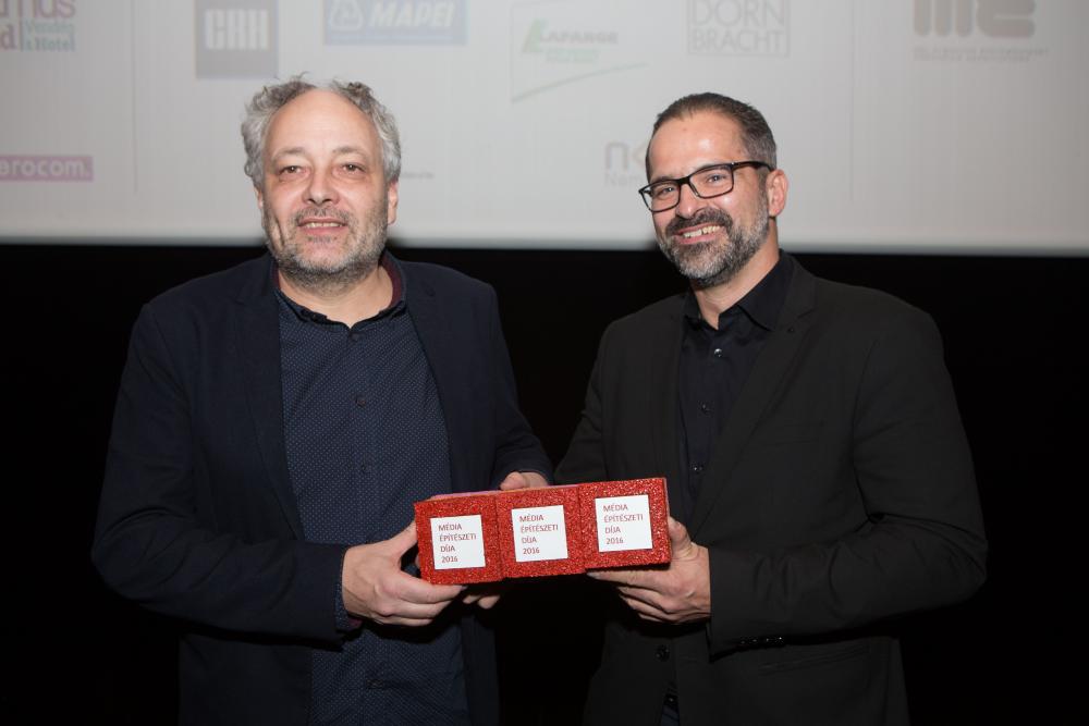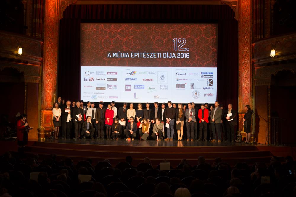 Megvannak a 12. Média Építészeti Díjának győztesei, akik az Uránia Nemzeti Filmszínházban vehették át az elismerést vasárnap este. A nyilvános zsűrizést és gálaestet, az epiteszforum.hu idén is azzal a céllal hívta életre, hogy a nagyközönség megismerje a kortárs építészet képviselőit. A gazdasági világválságot követő ínséges időszak után 2016-ra az építészet egyértelműen visszatért a sikerszakmák közé: a rengeteg megrendelésnek köszönhetően a magyarországi építészek rendkívül termékeny éven vannak túl. Ezt egyértelműen jelzi az is, hogy idén rekordszámú, 158 pályázat érkezett a Média Építészeti Díjára. A gálaest folyamán, a nemzetközi szakmai zsűri által előválogatott épületeket és terveket mutatták be alkotóik, melyeket hazai vezető sajtóorgánumok újságíróiból álló zsűri értékelt. Terv kategóriában a 2016-os Média Építészeti Díját a Csontváry Múzeumot mint zarándokhelyet elképzelő Nartarchitects vette át a Mapeitől, míg a már megvalósult épületek közül a győztes Győrffy Zoltán debreceni Szent György temploma lett, amelyet a Canon jutalmazott. Idén először a zsűri egy különdíjat is odaítélt, amelyet a Narmer Építészeti Stúdió és a BME Építőművészeti Doktori Iskola által megálmodott Rudapithecus Látványtár nyert el; az elismerést a CRH adta át. Három díjat is hazavitt a az Archikon Építésziroda munkája, a Meséskert óvoda.