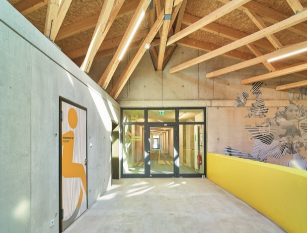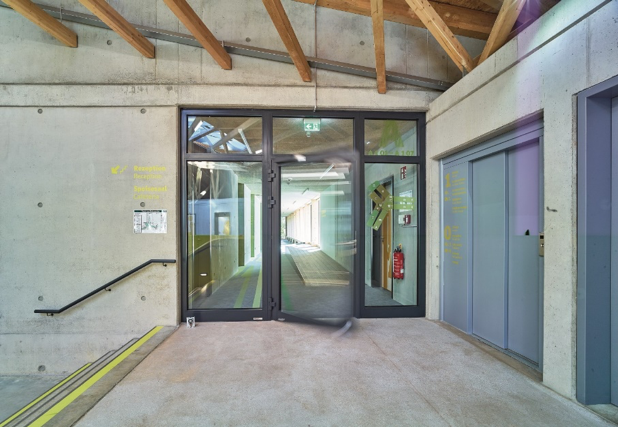 A bayreuthi új épülethez egy y-alakú alaprajzot választottak, melynél a hosszú és a két rövidebb szárny egy több emeletet átfogó központi helyiségben ér össze, s melyben minden funkcionális zóna megtalálható, a közösségi összejövetelek kézenfekvő helyszíne. A látványos átalakításból a Hörmann is kivette a részét, a vállalat alumíniumból készült tűz- és füstgátló ajtóelemeit használták fel. 4 db T60 tűz- és füstgátló alumínium ajtó választja el a kétemeletnyi magas központi helyiséget a földszinten és az emeleten a két szárnytól, ahol az ifjúsági szálló vendégszobái helyezkednek el. A biztonság is központi szerepet játszott, ugyanis a termék maradéktalanul megfelel a tűzgátlási követelményeknek és igazodnak a környezet igényes építészeti megoldásaihoz.