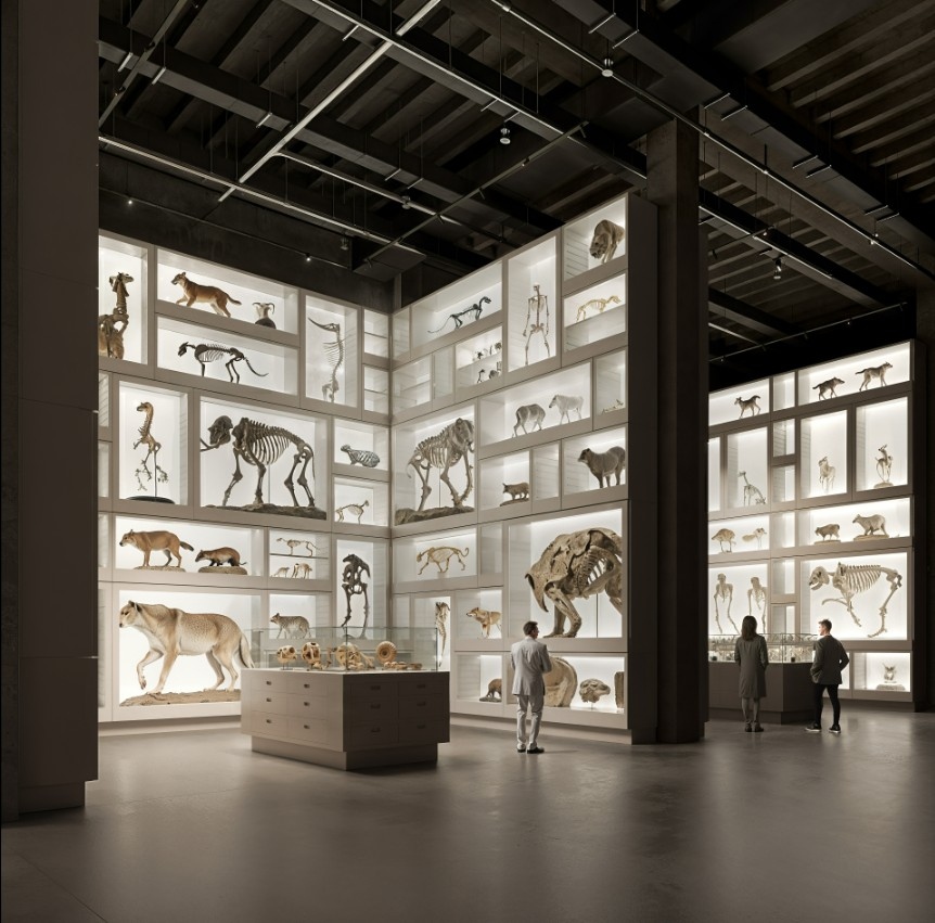 A tervezett Gyűjteményi Központ homlokzati világa párhuzamban állítható intézményének célkitűzésével: „gyűjteni, kutatni és bemutatni a biológiai sokféleség, a földtani örökség és a történeti embertan tárgyi emlékeit.” A különböző tájegységekről származó agyagtéglák a geológiai sokféleségnek köszönhetően struktúrában, színben és anyagban is finoman különböznek egymástól. Az épületen megjelenő téglaburkolat Magyarország különböző tájegységeiről származó agyagtéglákból épül fel, így válik sűrítményévé és archívumává az őt körülvevő anyagi valóságnak. amelyet a benne lévő 5 gyűjtemény dolgozói vizsgálnak. A finoman eltérő tónusok a különböző részlegekhez köthetőek, amelyek harmonikus egységet alkotnak.