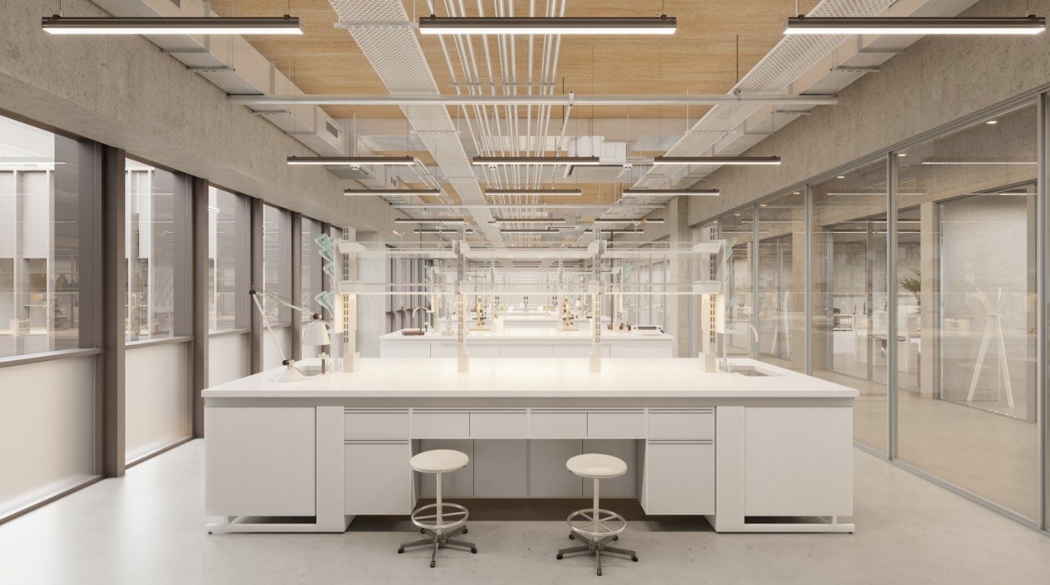 Túlzott formálás és aránytalan építészeti gesztusok helyett tudatosan szerkesztett homlokzati struktúra jött létre, amely finoman simul a tájba, monumentális bejárat vagy túlzó üvegfelületek nélkül. A nyílások harmonikusan illeszkednek az épülettömegbe, elnyújtott hosszanti sávokként jelennek meg amelyek tovább erősítik az épület horizontalitását.