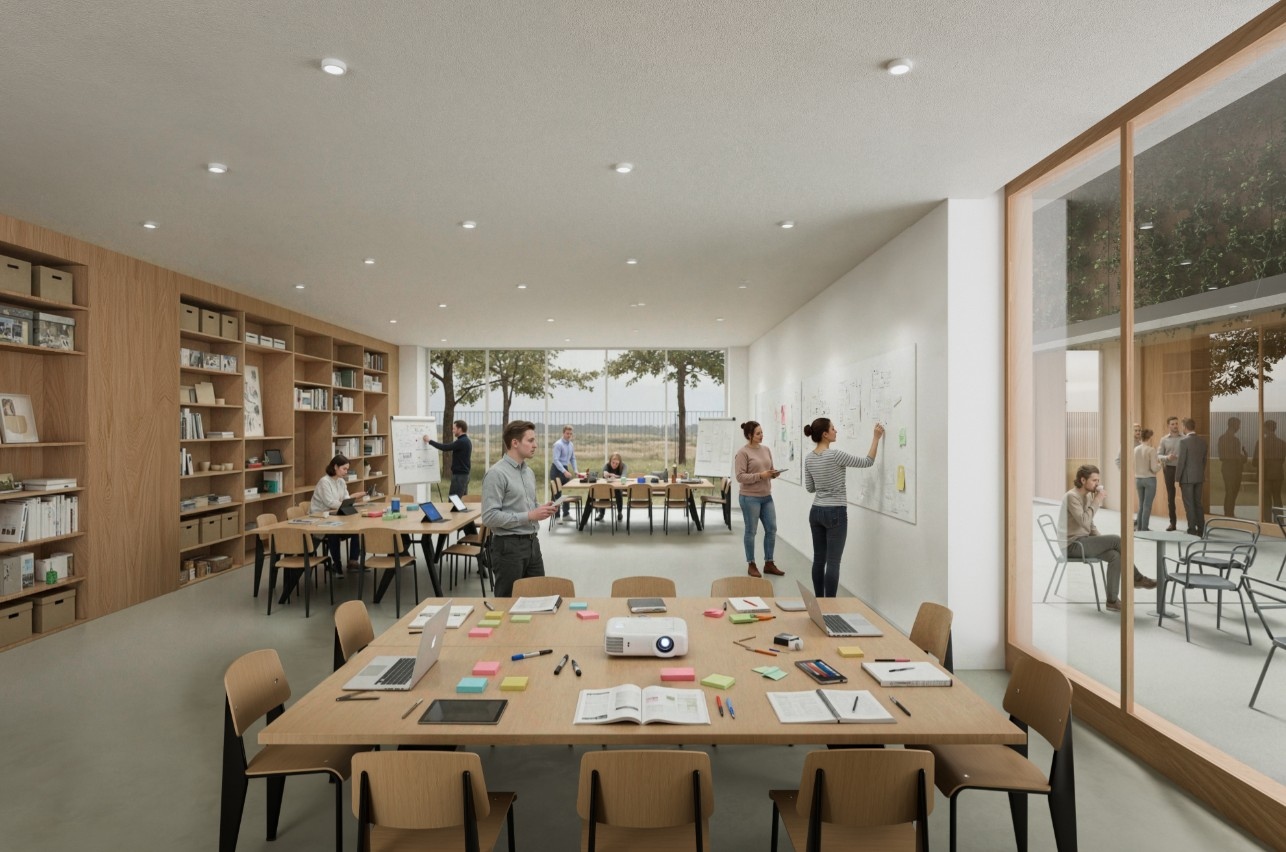 - Kompakt kialakítás és mértéktartó racionalitás: az épület kialakításánál a gazdaságos, racionális térszervezésre törekedtünk, amely elsősorban egy professzionális kutatási központhoz illeszkedően technológia-vezérelt, és csak a legfontosabb, szélesebb közönség által is látogatott helyeken válik nagyvonalúvá, egyedivé. A kutatóbázis és a tudásközpont összemetsződéseiként értelmezhető látványtárak és egyéb közönségforgalmi terek koncentrálása két szinten, az épület szívében történik.