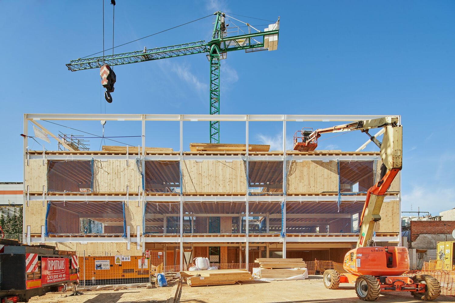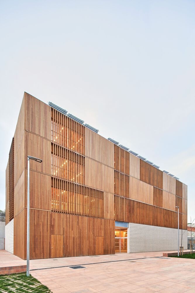Közel karbon-semleges közösségi központ épült rétegragasztott fából Barcelonában.