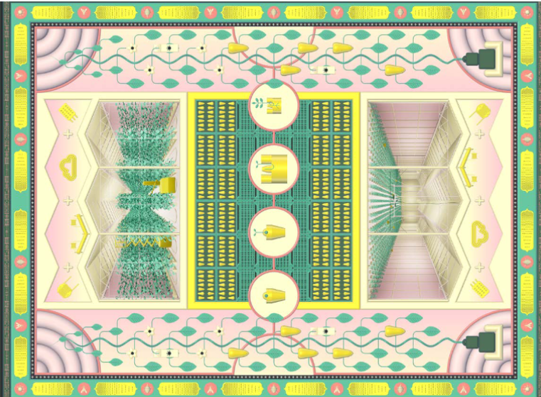 Viszont Makovecz hatása megkerülhetetlen, főképp a fiatalabb generáció számára, és ezt egy másik pályázat, Bodó Sándor árulkodó című munkája: Transmissions – párhuzamos valóságaink mutatja. Nem kevesebbre vállalkozik, mint hogy valamilyen módon párbeszédre hívja a magyar építészetet a lövészárok két oldalára kényszerítő irányzatok: a modern és az organikus elkötelezett híveit. Tudjuk, hogy ez a párbeszéd sosem jött létre, sőt, nagyon csúnya csatákba torkollott. Mostanra talán már okafogyott ezen rágódni, még akkor is, ha épp a modern épületek rombolásának korát éljük. A szakma jelenlegi megosztottságát nem a fenti ideológiai megosztottság, hanem politikai manipuláció okozza. Időközben létrejött egy nem csak Magyarországhoz köthető, de itthon szívesen művelt, regionálisnak tekinthető irányzat, amely jóindulatúan egyesítette a modern őszinte anyagi, technikai racionalitását az organikus lelkiséggel, és amelyhez többek közt az „organikusok” által újra-felfedezett magyar népi építészet jó alapot adott. Mindenesetre abszolút örömteli, hogy ez a téma terítékre került, nyilván hasznos a kiemelkedő munkák egymás melletti számba vétele, de érzésem szerint ez is inkább a hazai közönség érdeklődésére tarthat számot, mondjuk egy, a FUGÁban megrendezett kiállításon. Ezen felül nagyon érzékeny és alapos háttérkutatást igényel, ami nem feltétlenül egy nemzetközi show keretei közt valósítható meg igazán. A pavilon szimmetrikus, a bejárattól két irányban is körbejárható tere ugyanakkor szinte kiált az efféle párhuzamos, antagonisztikusnak vélt világképek feltárására és láttatására. Szimbolikus és egyszerűségében szellemes az installáció is: egyetlen, hosszú asztal mellé ültetni a párhuzamos valóságok elszánt híveit, hogy együtt játsszanak a nagy ideológiai csaták apró modelljei között.