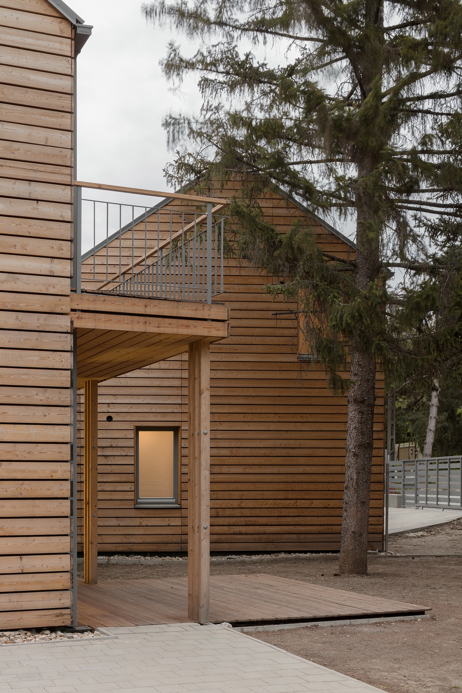 Itt már a hagyományos építési tapasztalat korszerű hasznosításával van dolgunk, egy ősi építészeti fogás, a tornác újraértelmezésével. Néhány évet volt alkalmam egy amúgy minimális komfortot nyújtó faház áldásait élvezni, melyet három oldalról fedett-nyitott folyosó fogott körbe. Ez az egyszerű fogás kiküszöbölte a hasonló viskók minden nyűgét, és rekkenő hőségben is kellemes hőérzetet adott, így engem örökre a nyitott tornácok elkötelezett hívévé tett.