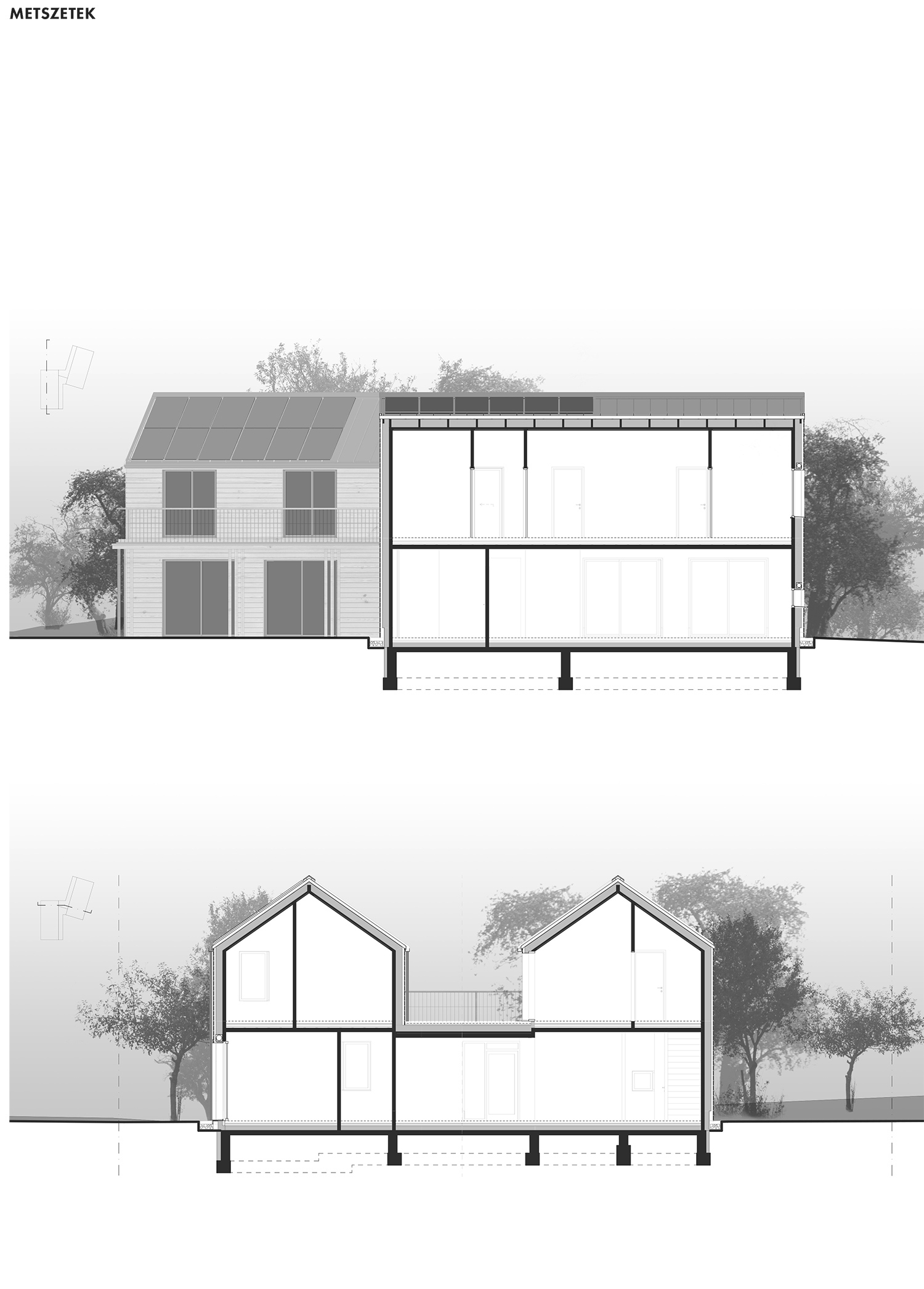 Ők laikusként csak a végeredményt élvezik: egy jól lakható, szerethető kényelmes otthont, amely 120 négyzetméteren nyújt kivételes luxust, a szabadság és az egészséges élet természetes luxusát. Nem utolsósorban kíméli a lakók pénztárcáját: az okosan alkalmazott építészet – a nem túldimenzionált méretek, kényelmes alaprajz, a megfelelő mennyiségű természetes fény, a tornác puffer szerepe a hőháztartásban, a természetes szellőzés –, kiegészülve a korszerű rétegrenddel és a wifi vezérlésű árnyékoló redőnyökkel, a hatékony Panasonic levegő-víz hőszivattyúval, az aktív napelemes áramtermeléssel, amely többek között elektromosautó-töltőt működtet, gazdaságosan üzemeltethetővé teszik a házat. A fenntarthatósági szemlélet különlegesen következetes megvalósulását jól illusztrálja a hulladékkezelés: összesen két konténert kellett elvinni az egész építkezés alatt úgy, hogy volt egy bontandó épület és melléképület is, a vörösfenyő homlokzatot pedig úgy szerkesztették, hogy a vágási veszteség 1% alatti volt, minden leeső darabot felhasználtak.