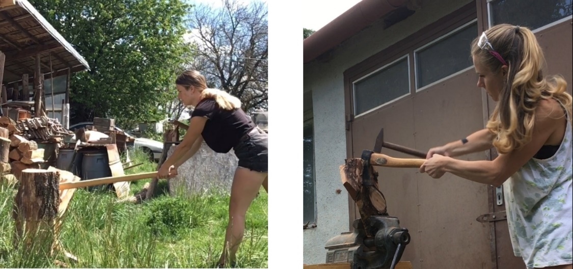 A talált fadarabokat is csoportosítottam, majd a meghatározott csoportokhoz társítottam a számomra legmegfelelőbb megmunkálási és felhasználási módot. Az első csoport a kisebb-nagyobb darabokban talált erdei fahulladék, a második csoport az emberi behatás (ELMŰ) következtében kialakult fűrészelt fahulladék, a harmadik csoport pedig az elpusztult fák nagyméretű rönkjeinek feldolgozása és tüzelőnek való felhasítása során kiemelt darabok voltak.