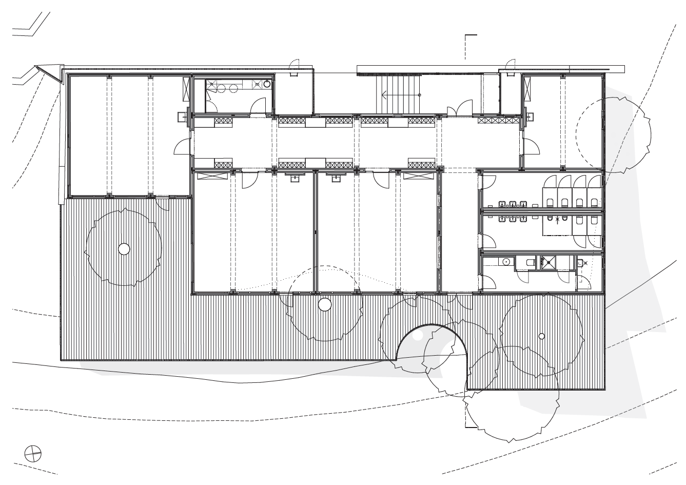 Az iskola oktatási programja azonban igényelte az elmaradt bővítést, a terephez igazodva, a Vadászház melletti teraszon felállított ideiglenes konténerekben elhelyezett előkészítő osztályok számára szükségessé vált a magasabb minőségű elhelyezés. A helyzet azonban közben és azóta is folyamatosan „fokozódik”, és ahogy az építész műleírás fogalmaz: türelemre int. Na meg fokozott józanságra. Ami Aravenánál még szimpatikus kiáltvány volt, majd' egy évtized elteltével már a kiábrándító valóság. Nevezhetjük egyszerűen recessziónak is, ám helyesebben tesszük, ha ésszerű, ökonomikus gondolkodásnak tituláljuk. Két és fél évtized elteltével Fuksas felszólítása polgárjogot nyert a mindennapi gondolkodásban.