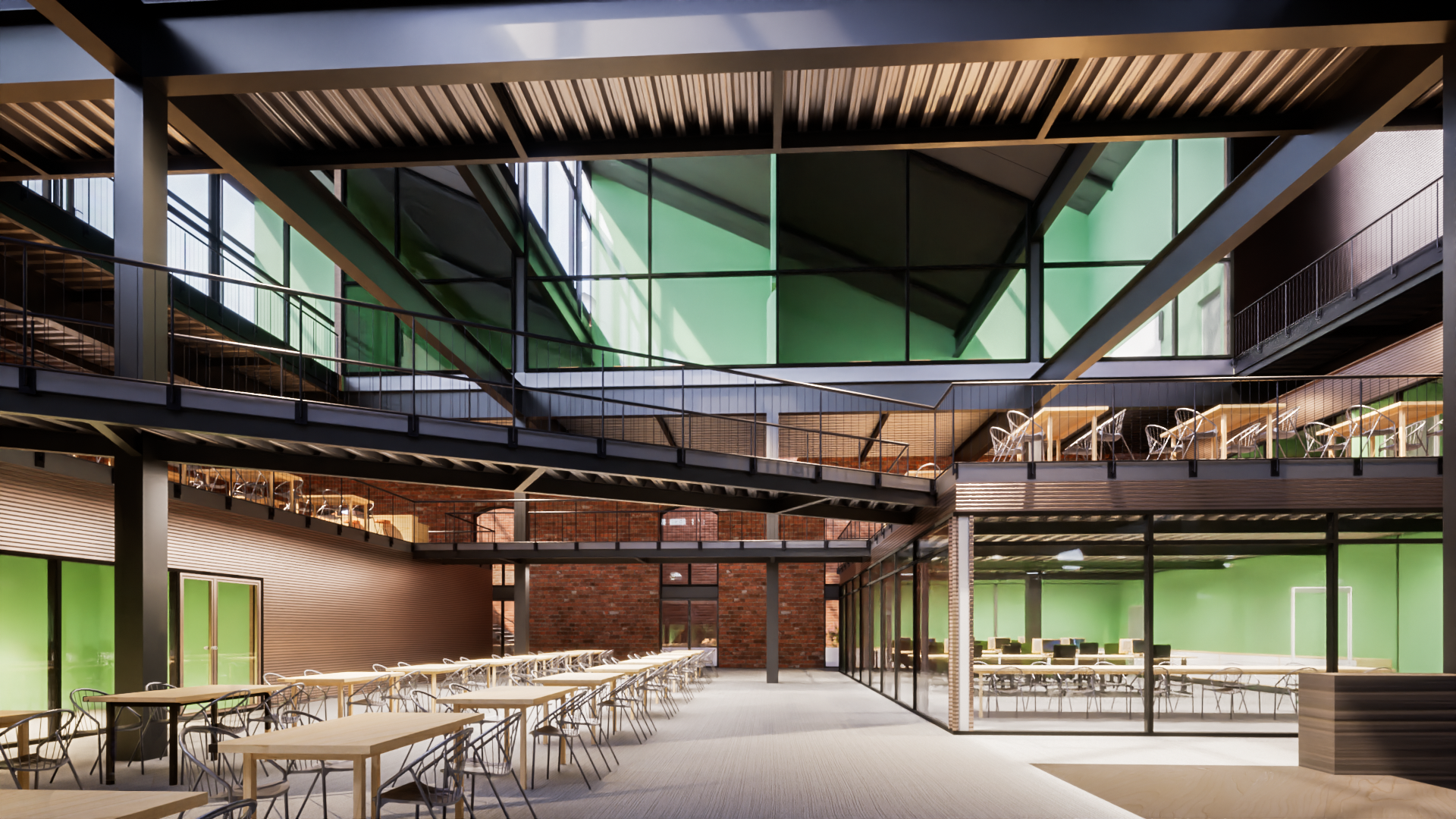 A meglévő épület alapterülete 9000 négyzetméter, ezt a terv 12 000-re bővíti ki. A bővítésre alapvetően azért volt szükség, mert a stúdiótereknek maguknak nagy belmagasságra van szüksége, (körülbelül 20-25 méter) amely a jelenlegi épületben nem volt megoldható. Ezért az épület keleti oldalára egy új tömeget építettem, amelyben ezek a stúdióterek kapnak helyet. Ez az új tömeg próbál egyszerű maradni, egyedül a tetőformák jelentenek rajta bonyodalmat, amik kesztyűként kerülnek rá a már meglévő épület tetőszerkezetére.
