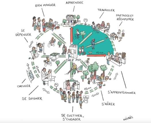 Carlos Moreno francia-kolumbiai professzor elmélete kapcsán két éve kezdett kibontakozni az a forradalmi eszme, ami egy szabadabb és emberibb léptékű, gyalogos és kerékpáros közlekedéssel bejárható méretű várost vizionál. A koncepciót és az eszmét Párizs polgármestere, Anne Hidalgo is átvette, Manzini pedig könyvet adott ki „Abitare la possimità” – Közelségben élni (Egea kiadó) címmel. Egy olyan vízió összegzése és kiindulási pontja ez, amire világszerte már számos konkrét példa akad Párizsból kiindulva a ma már híres spanyol „Superilles of Barcelona” makrotömbjéig, ami az utca fogalmát közösségi térként gondolja újra ahelyett, hogy továbbra is a helyváltoztatás eszközévé degradálná azt.
