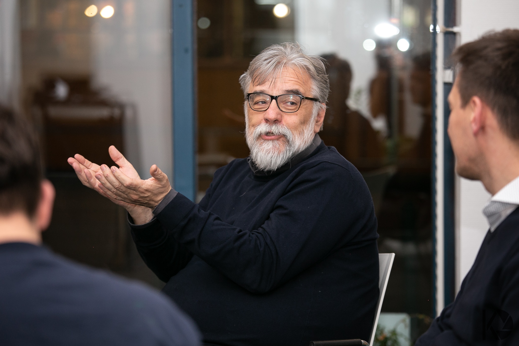 Visszatért a Kortárs Építészet Központ Trust Your Architect! című beszélgetéssorozata: a március 7-én indult tavaszi félévben hatalom, döntéshozatal és építészet kapcsolatát boncolgatják a Bartók Béla úti központban. Az első esten Alföldi György DLA, építész, várostervező, városépítési-városgazdasági szakmérnök, a BMGE Építészmérnöki Kar dékánja és Király Zoltán, a Tiba Építész Stúdió vezető tervezője volt a vendég, akikkel a beszélgetés interaktív, klubhangulatú lett, azaz a fiatal építészekből álló közönség is bevonódott. A moderátor Balázs Bálint (KÉK) volt.