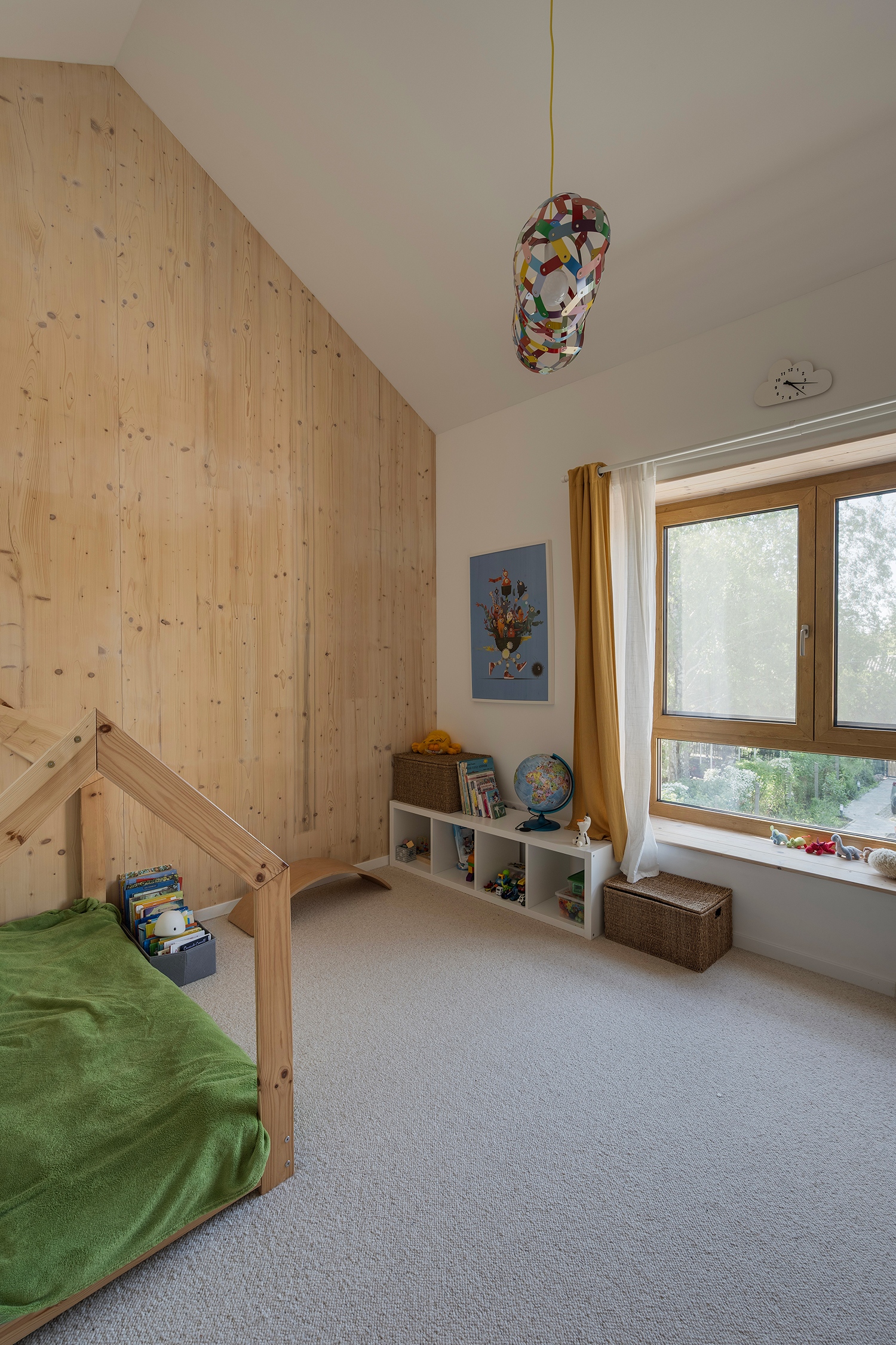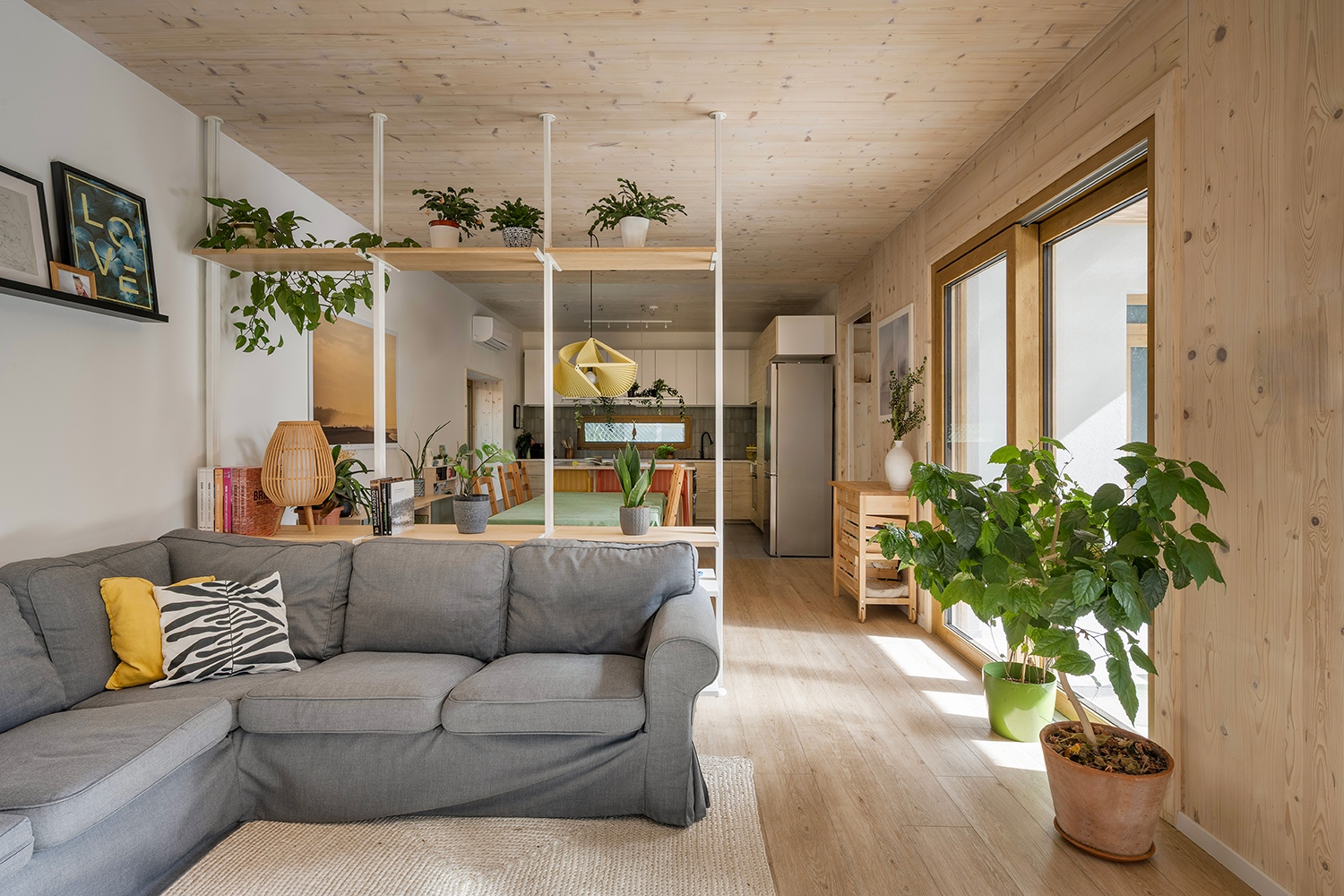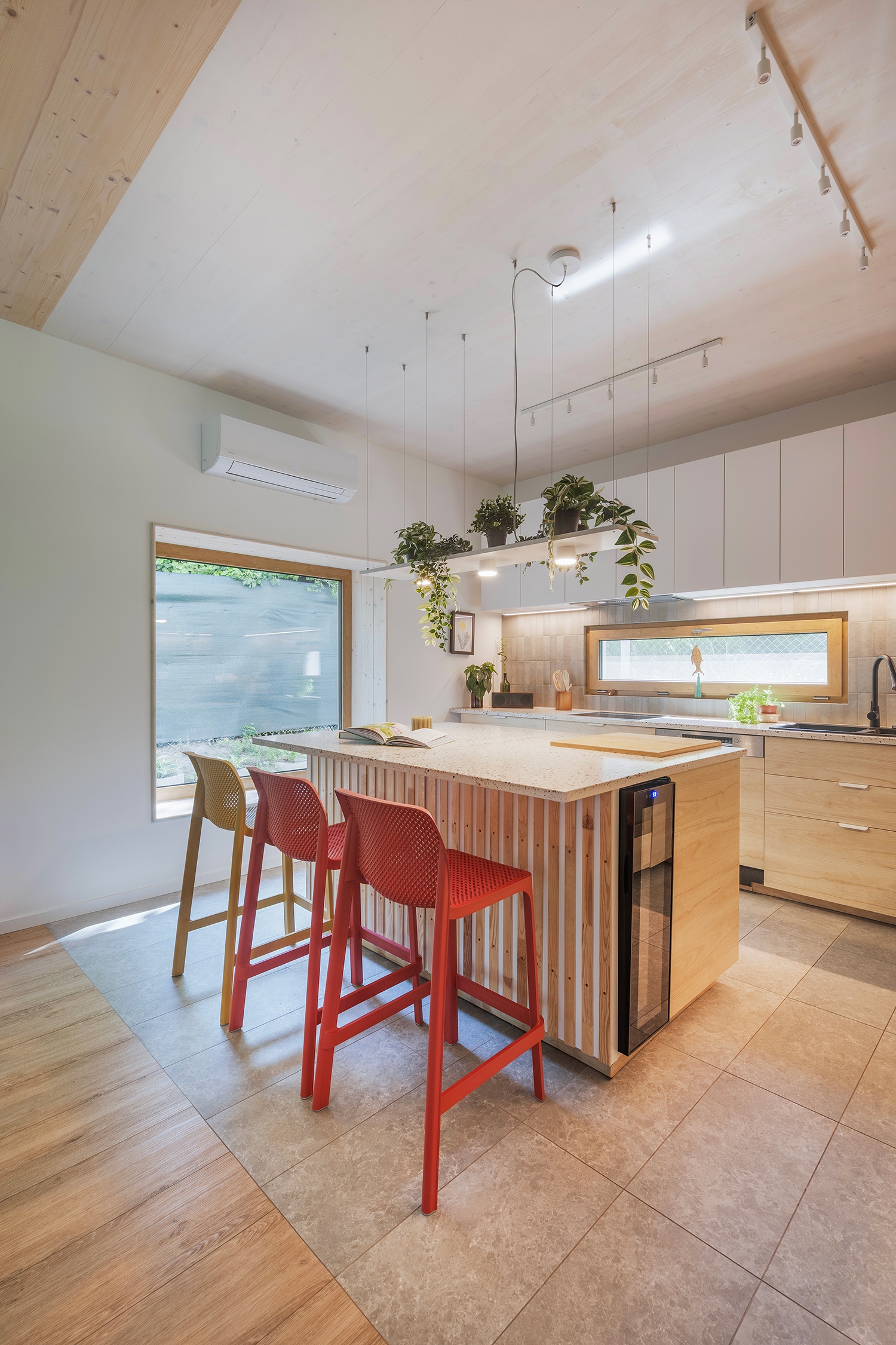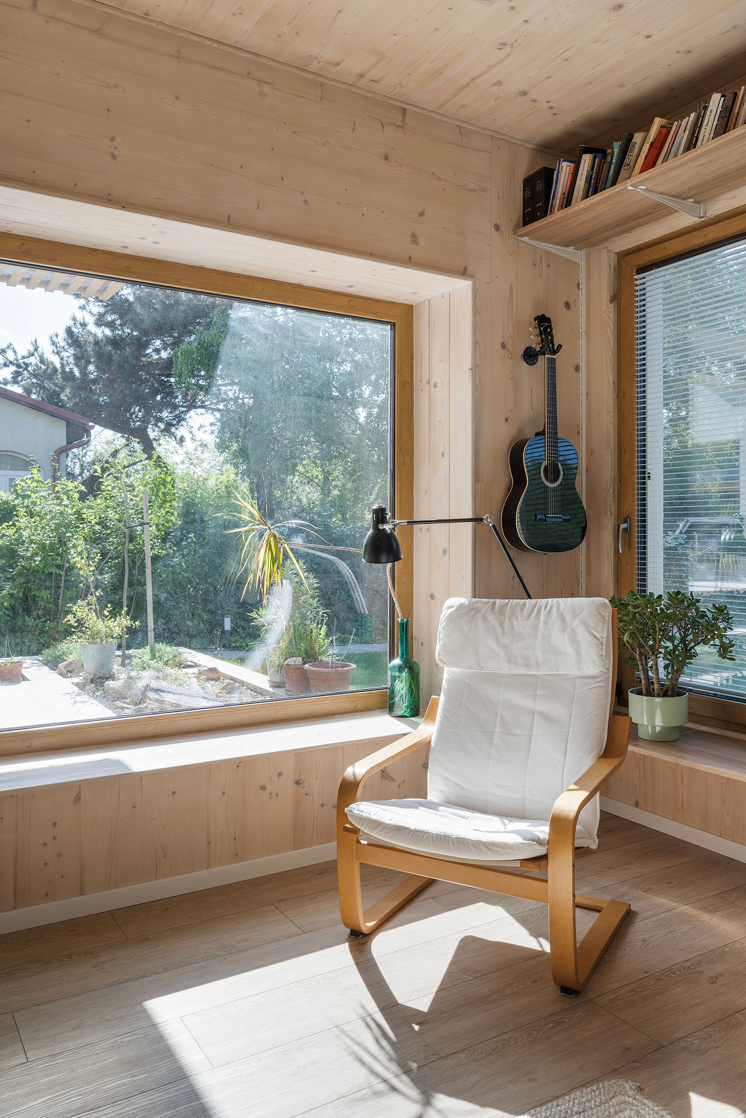 Szerencsére nem egy sztráda mellett van a ház, így nem mindennapi gond, és lehet, hogy ha 40 cm-es téglafalakból álló lakásból érkezel egy CLT-házba, akkor ne legyenek ugyanolyan elvárásaid, de ez volt az egyetlen, ami azóta feltűnt, hogy kicsit mintha jobban hallanánk a külvilágot. Mindentől függetlenül a 20 cm EPS a 40 fokos hőségben is úgy tartja az elviselhető hőmérsékletet, mintha a pincébe mennél le, és télen hasonlóan kevés energiával lehet fenntartani a padlófűtésből érkező meleget, szóval tényleg relatív a „probléma”, de kicsit sem szegte a kedvünket.