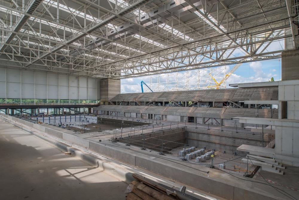 A kiváló tervezésnek és ütemezésnek, valamint a professzionális kivitelezésnek köszönhetően a létesítmény jelenleg már 75%-os készültségi szinten áll, így akár 2-3 hónappal a határidő előtt elkészülhet a 2017-es FINA úszó-világbajnokság fő helyszíne. Az 5000 embernek munkát adó, hatalmas projekt, amely a Market Építő Zrt. kivitelezésében készül, több szempontból is különleges, világszínvonalú megoldásokat vonultat fel.