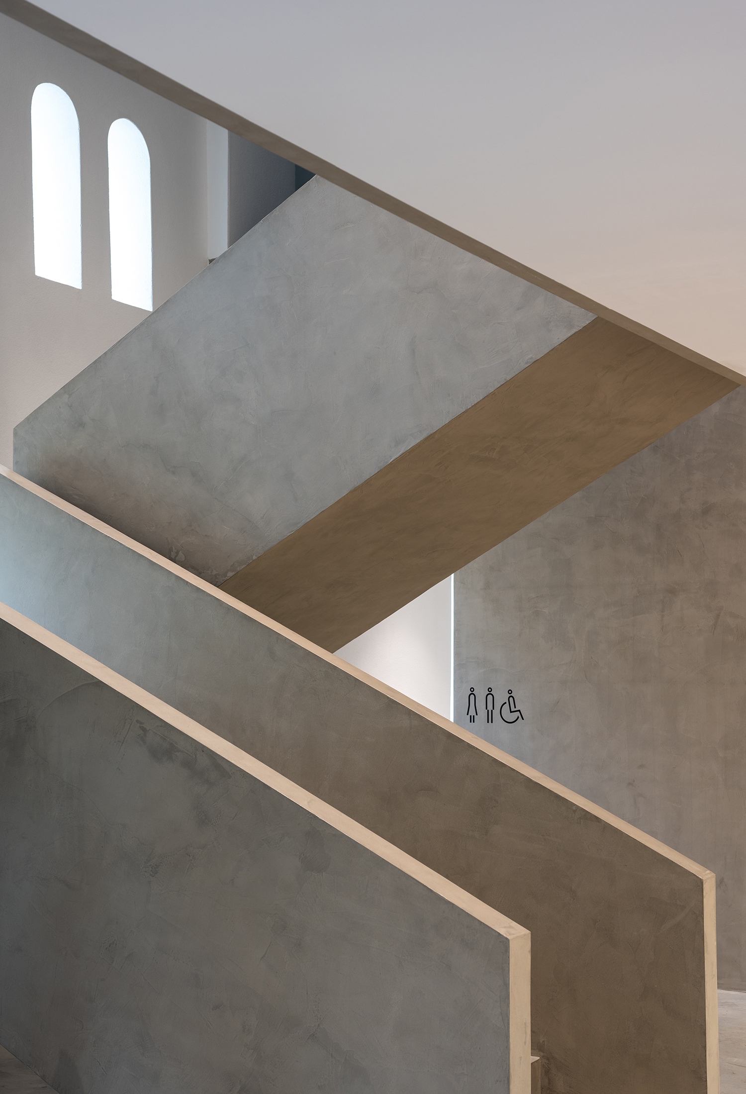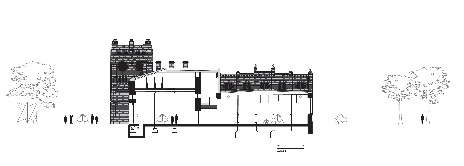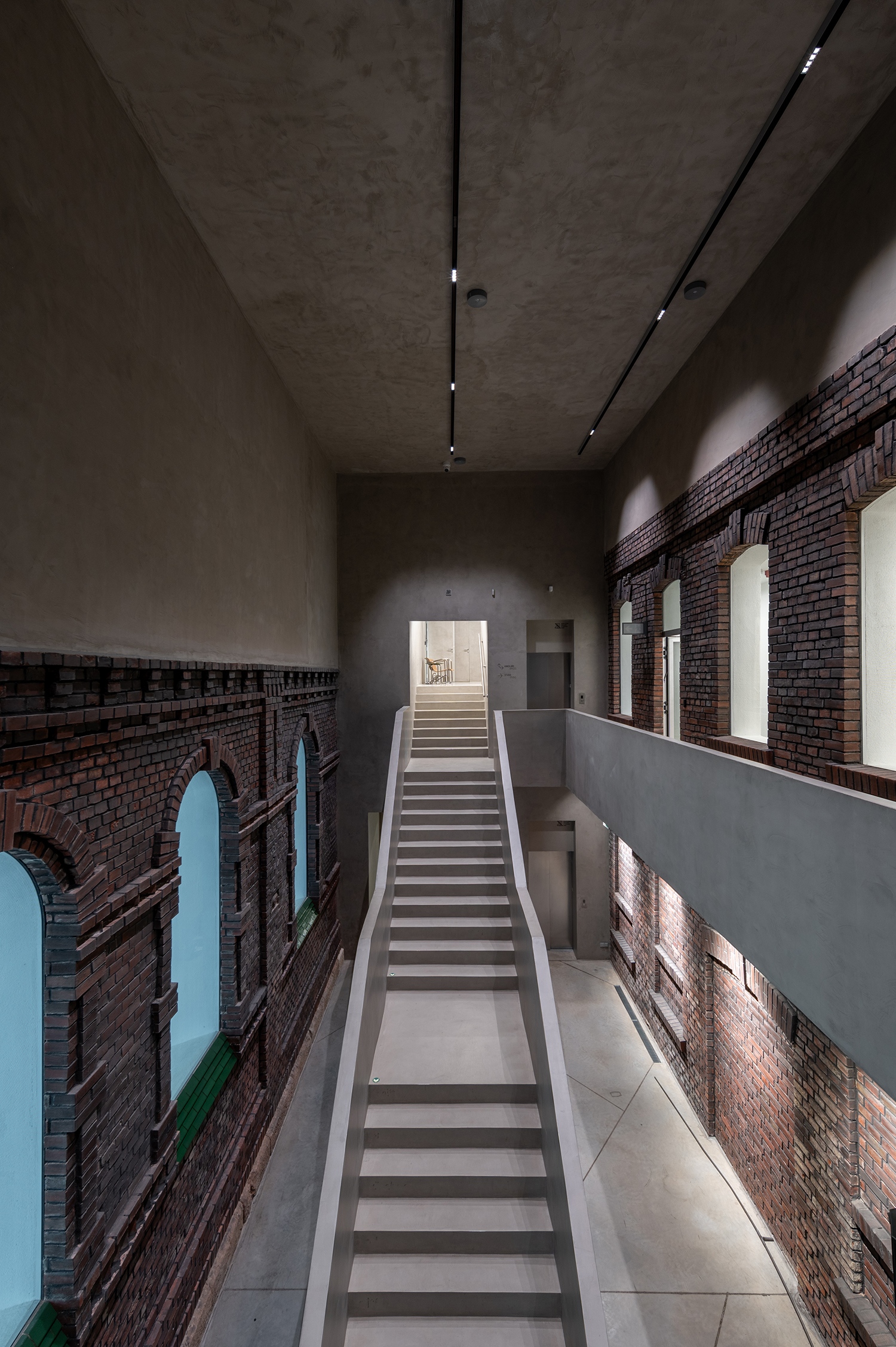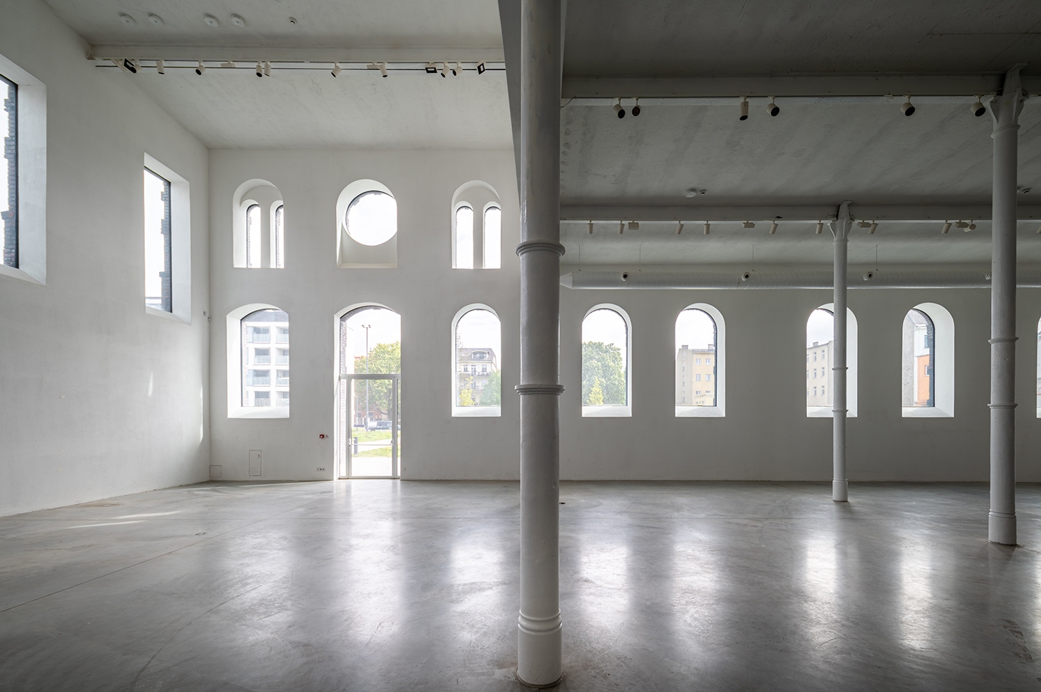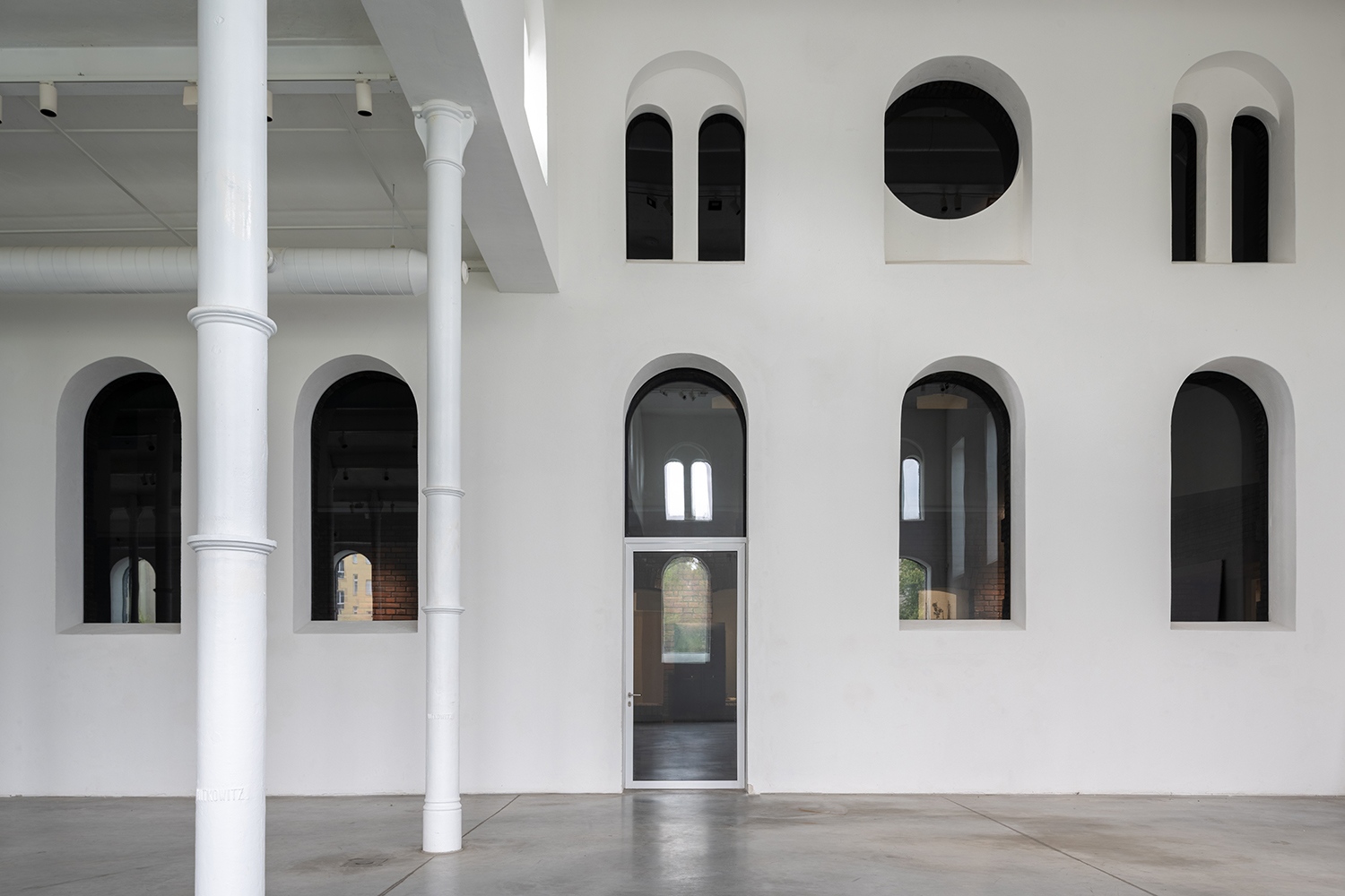 A komplexum egyik szárnya elpusztult, ezt szintén mikrocement külső burkolattal építették újjá, leomlott tégláit pedig felhasználták a megmaradt eredeti homlokzatok kipótlásaihoz. A vágóhíd belső tereit régen higiéniai okokból meszelték fehérre, a kiállítóterek pedig így most is, speciális mészvakolattal maradtak ilyen vakító árnyalatúak, már csak a white cube rendeltetés miatt is. Az új forgóajtók ötletes gag-ek, de a kiállítások alkalmával is rendszeresen használják ki vele a kint és bent összemosódását, egyes művészek direkt játszanak a tér ezen adottságával.