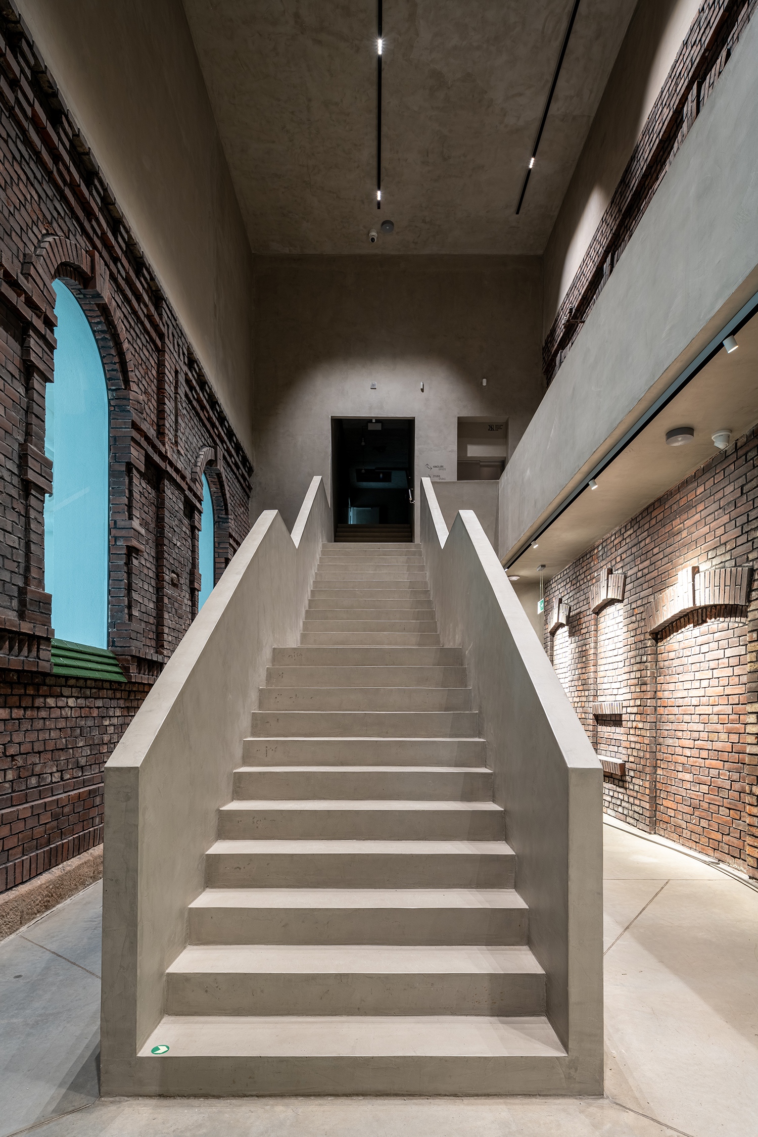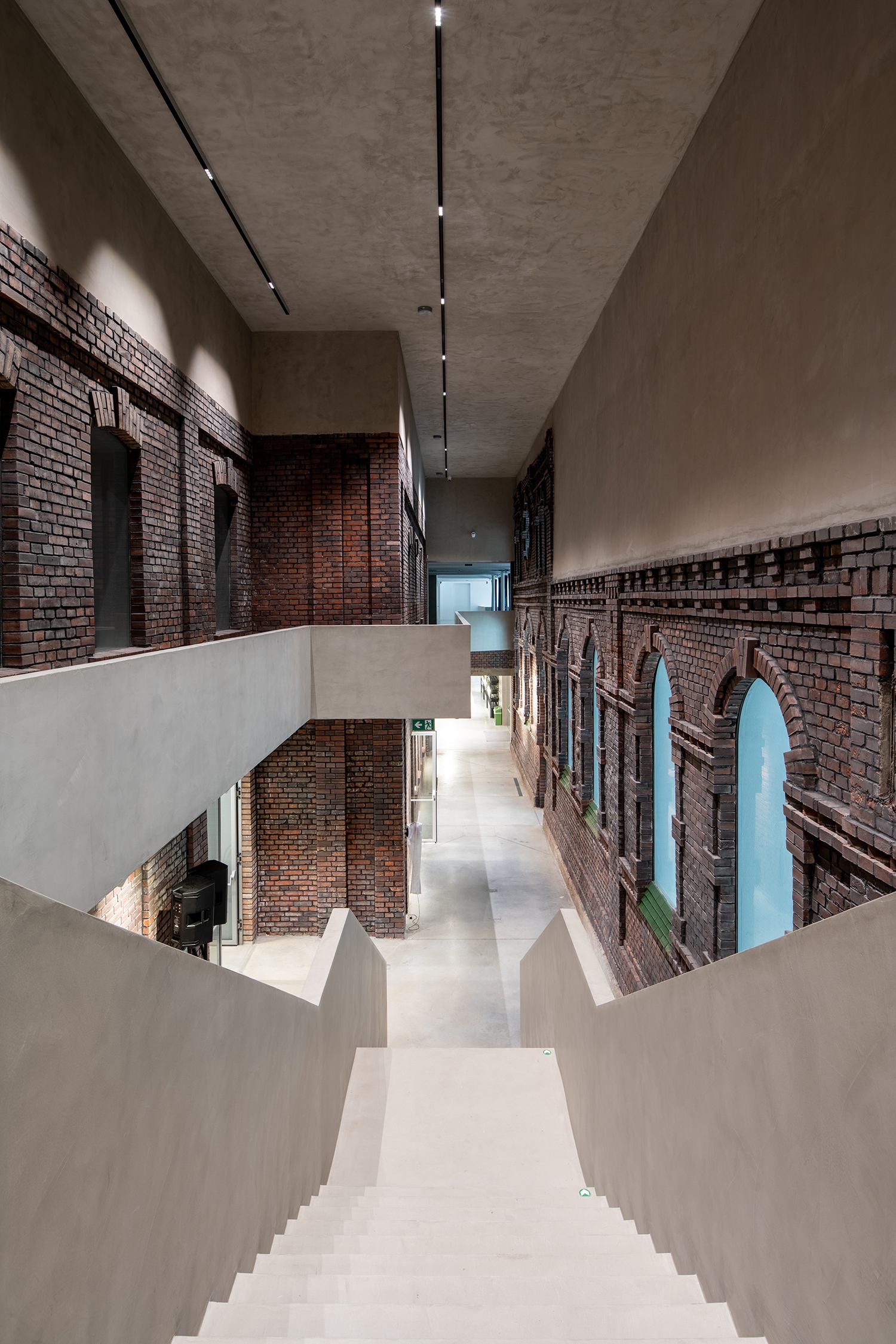 Lengyelország egyik legtehetségesebb építésze, a világhírnévnek örvendő Robert Konieczny által megálmodott PLATO művészeti galéria tipikusan a Velencei Karta követe a látványában konfrontatív kiegészítéseivel, de forgópaneljei és az eredeti homlokzati motívumok lekövetése által egy kreatív, a műemléki részek védelme miatt pedig még szakmaibb lépésről is van szó. Az elegáns ipari épület vágóhídként funkcionált valaha, később a megváltozott technikai igények miatt nagyobb ipari nyílásokat eszközöltek felületén. Ezeket Konieczny megtartotta, ahogy a védett, mélysötét téglahomlokzatot is, viszont minden új „betapasztás” mikrocement burkolatú, látványosan a téglától elütő színnel született.