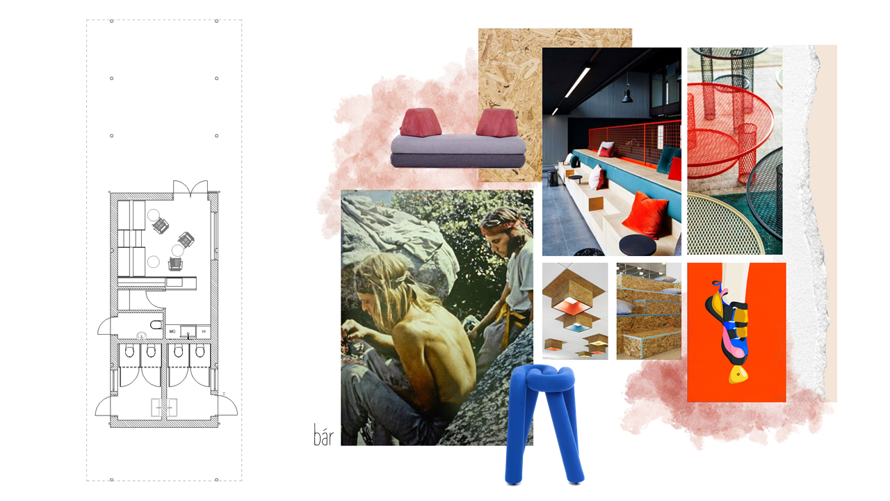 Koncepció | Ahhoz, hogy igazán otthon tudják érezni magukat a kemping területén – megtartva a hely eredeti funkcióját –, a különböző szállástípusok mellett biztosítok szabadtéri és fedett mászási lehetőségeket is. Így nem csupán a közelben elérhető természetes sziklafalak tehetik vonzóvá az itt töltött időt, hanem helyben is lehet edzeni, gyakorolni, akár edzőtáborokat, versenyeket szervezni a mászótúrák mellett.
