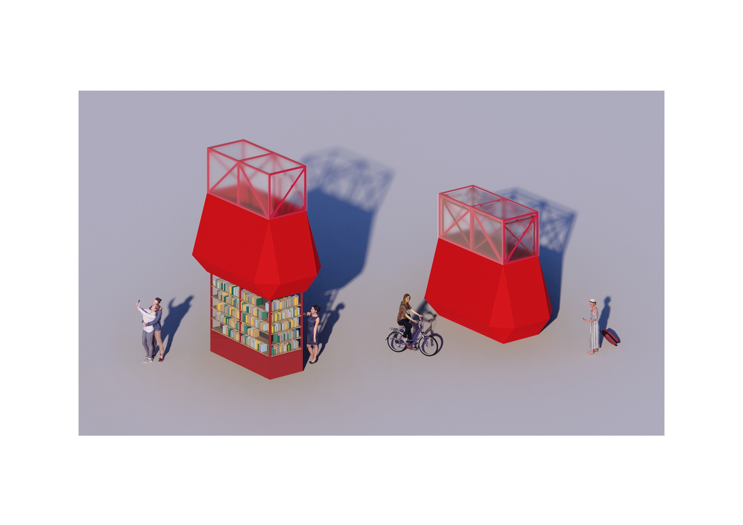 A Könyvmentők Kulturális Egyesület több mint tíz éve menti meg a pusztulástól a még olvasásra érdemes könyveket. Az egyesület jól felismerhető piros szekereik a város legtöbb pontján megtalálhatóak. A Széll Kálmán téren viszont most egy új, a térhez és a budapesti pavilonépítészet hagyományaihoz illeszkedő pavilonnal jelenne meg ez a speciális kulturális indíttatású könyvterjesztés.