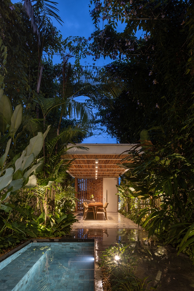Az egyszerű, olcsó alapanyagok, valamint a szabadon maradt terek, a külső helyszín és a természet adottságainak okos felhasználása nyitott, naturális környezetet teremtett. „A tájépítészet segítségével PANC-féle (nem hagyományos élelmiszernövényekkel operáló) kert létesült, ahol a főszerep az őshonos, vadon élő növényzeté: többek között vad gyömbér, vadszőlő, nyílgyökér és maracuja burjánzanak itt” – taglalja tovább a munkát Troost.