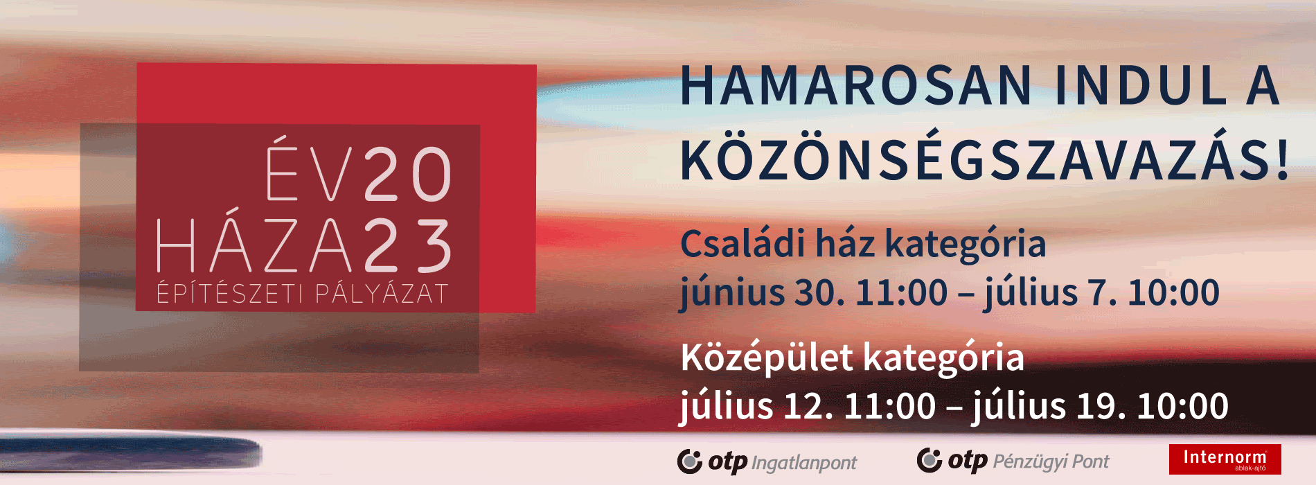 A középület kategóriában pedig július 12. (kedd) 11:00 és július 19.(kedd) 10.00 között mondhatják el véleményüket szavazatukkal a pályázat közösségi oldalán az érdeklődők. Ebben a kategóriában a nagyközönség megkérdezését idén is az Internorm Ablak Kft. támogatása teszi lehetővé.