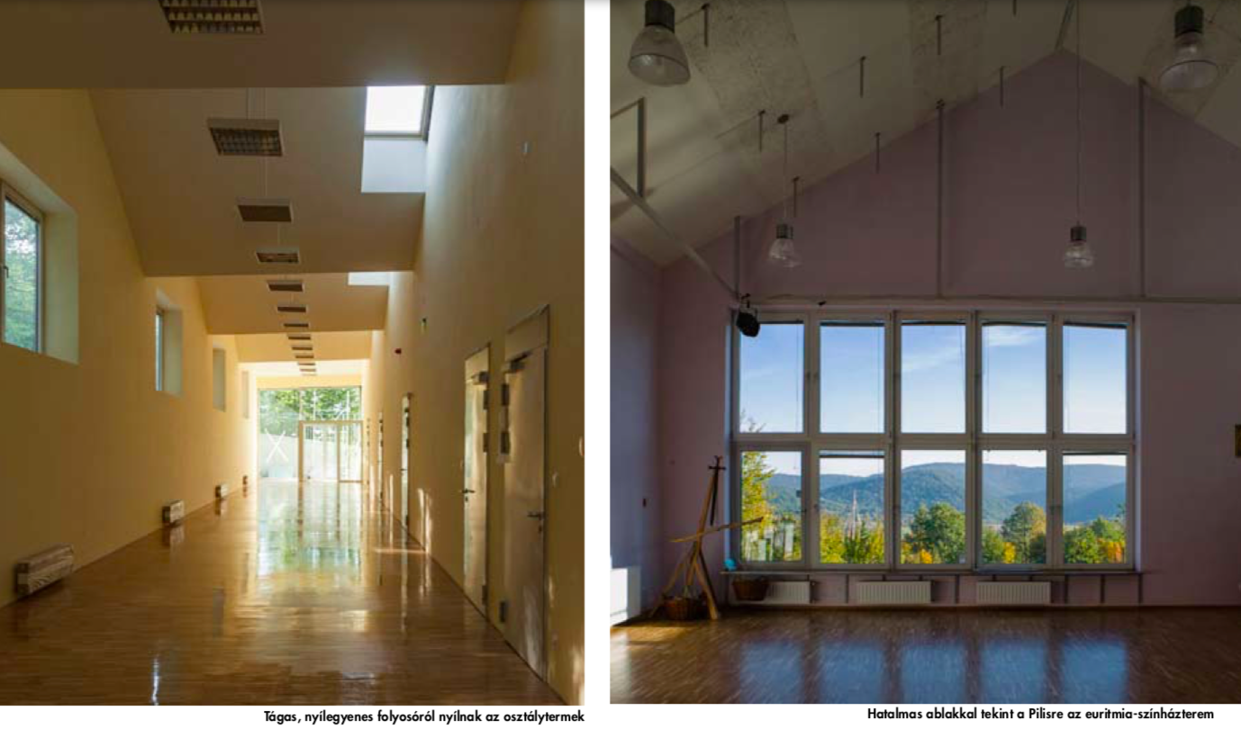 Itthon vagyunk. Az osztályok szépek. Az euritmia-színházterem tökéletes. Karzata van. A karzat egyik üvegezett része tanári pihenő. Persze van, ami még nem valósult meg. A kihúzható tribün és a gépi szellőztetés a teremben, a galériák a tantermekben. De ez talán nem is baj. A magasság is magasba húz ezekben a helyiségekben. Ez is hozzájárul a hasonlíthatatlan atmoszférához.