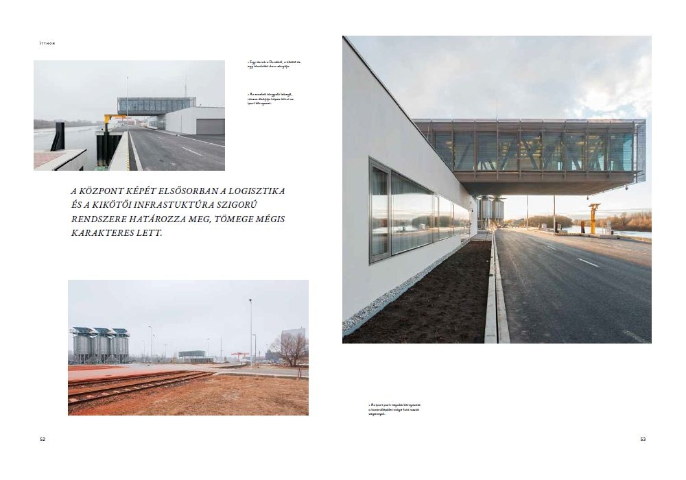 A Sporaarchitects-térhálózat csapatának köszönhetően a Győr-Gönyű Országos Közforgalmú Kikötőbe egy kontroll épület került. A multifunkciós épületet a kikötői infrastruktúra szigorú rendszere határozza meg, tömege mégis karakteres. A Hatvani Ádám, Korompay Attila és Dékány Tibor vezetésével tervezett ház egyszerre iroda, irányítóközpont és szervízállás, személyzete innen kommunikál a partfalnál várakozó uszályokkal. De alkalmas arra is, hogy elvégezhessék az uszályok hulladék- és veszélyesanyag-mentesítését. Emellett magában foglal még gépkocsi tárolót, vízminőségvizsgálati labort, tárgyalót, sőt vendégszobát is. Erre a feladathalmazra azért van szükség, mert itt egy ipari és közlekedési csomópontban vagyunk, ahol a vízi-, közúti- és a vasúti közlekedés összeér. Az építmény koronája, központi eleme az emeleti, a padlótól a mennyezetig üvegezett épülettest, ami – egy közúti szelvény fölött – a vezetői irodákkal és a központi tárgyalóval konzolosan nyúlik a víz felé: innen nemcsak vízi körpanoráma adódik, de a magasból a kikötői tevékenységet is át lehet tekinteni.