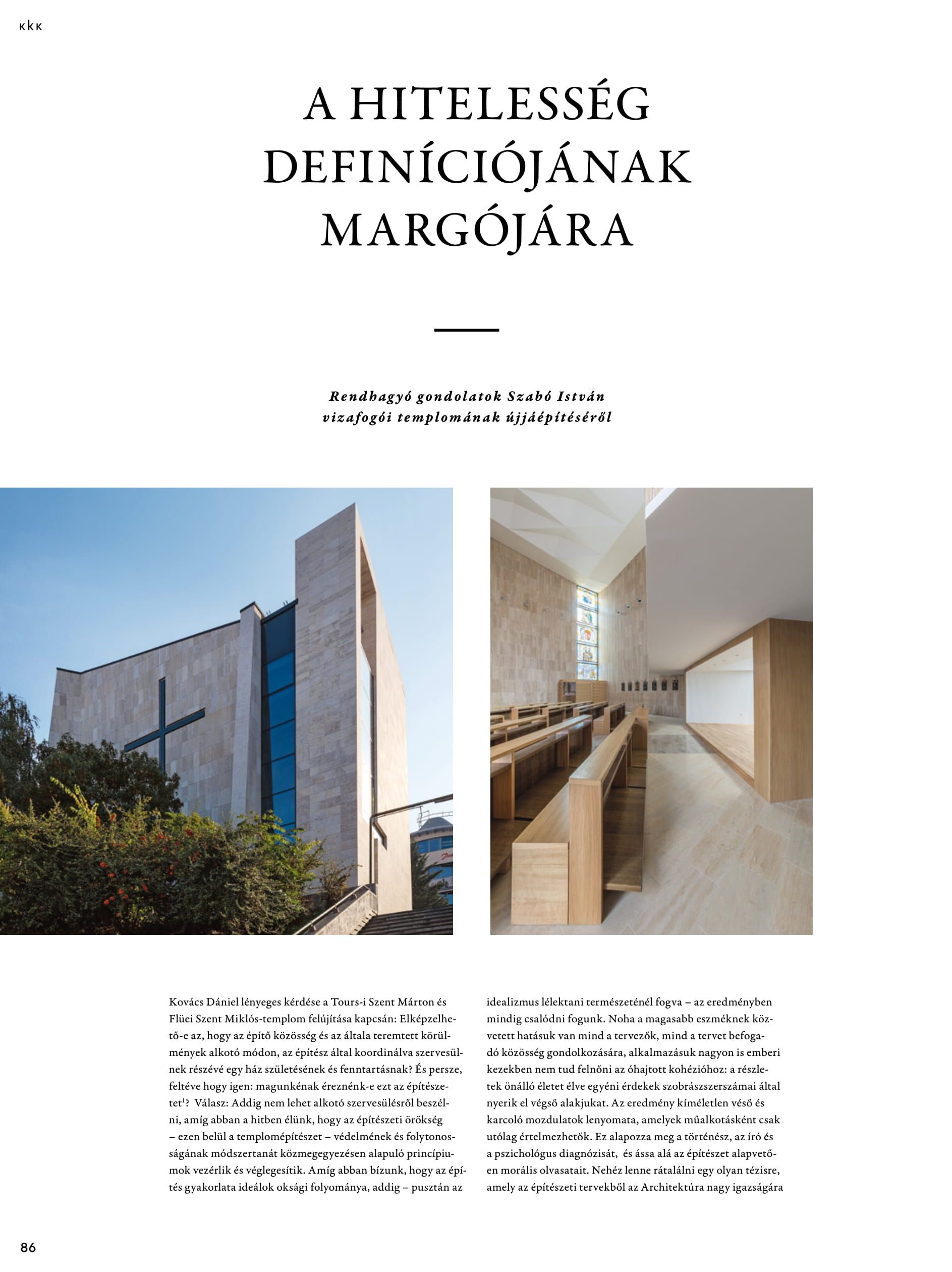 A vizafogói Tours-i Szent Márton-templomot Szabó István, a legendás modern építész, belsőépítész és szobrász tervezte 1981–82 folyamán. Berecz Tamás és Batári Attila alapos munkával járt utána az építész eredeti szándékának s szellemiségének mély átérzésével, új művet létrehozva rekonstruálta azt. A ‘80-as évek elavult szerkezeteinek cseréjén túl átértelmezték a szakrális teret, valamint a belső közlekedés és a harangtorony szellemes és szerves, dramaturgiailag feszes kialakításával, magas szintű társművészeti teljesítménnyel, újrafogalmazták a templomot. “Hommage à Szabó István”, ami aktuálisan két törekvést jelentett: rekonstruálni a mester eredeti elképzelését és ahol lehet, a mai technológiai és funkcionális igényekhez, a megváltozott városképhez igazítani a meglévő templomot.” - írja Katona Vilmos az épületről. “Mivel a szakrális építmények lényege a térszervezés, az eredmény inkább tűnik egyéninek, mint a készen kapott gondolatiság folytatásának. A hitelesség szempontjából kiértékelve: önmagát igazoló döntés, tudat alatti ellenérzés mindazzal szemben, amit üzenetével „képvisel”. Tartalmi útkeresés és kiforrott formaérzék. Ambíció és ennek elfojtása.”