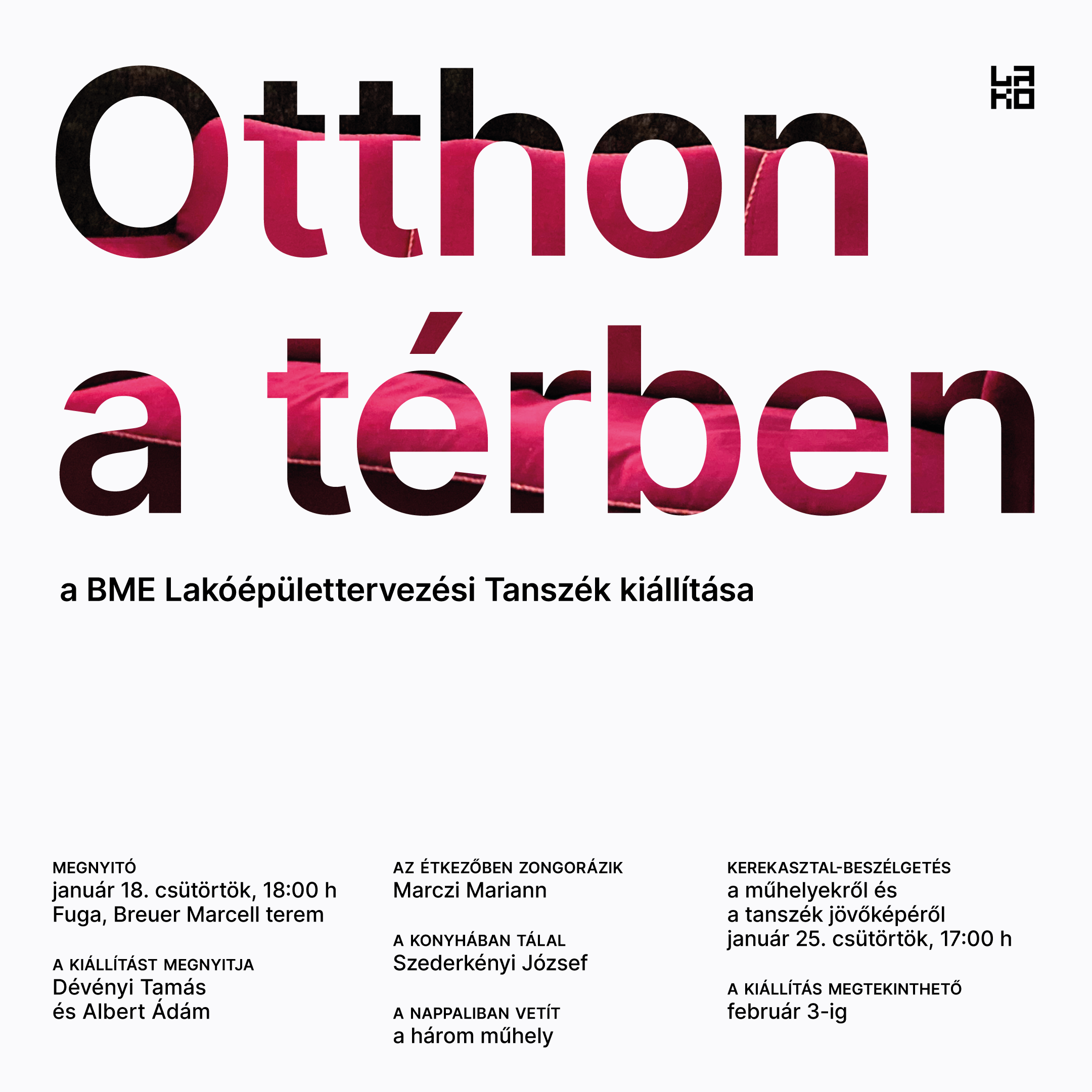 2024. január 18-án este hatkor nyílik és két héten át várja az érdeklődőket a BME Lakóépülettervezési Tanszékének elmúlt két évét bemutató kiállítása, mely rendhagyó installációban fogadja a látogatókat. Nagy Márton DLA Tanszékvezető invitálja közönséget az alábbiakban.