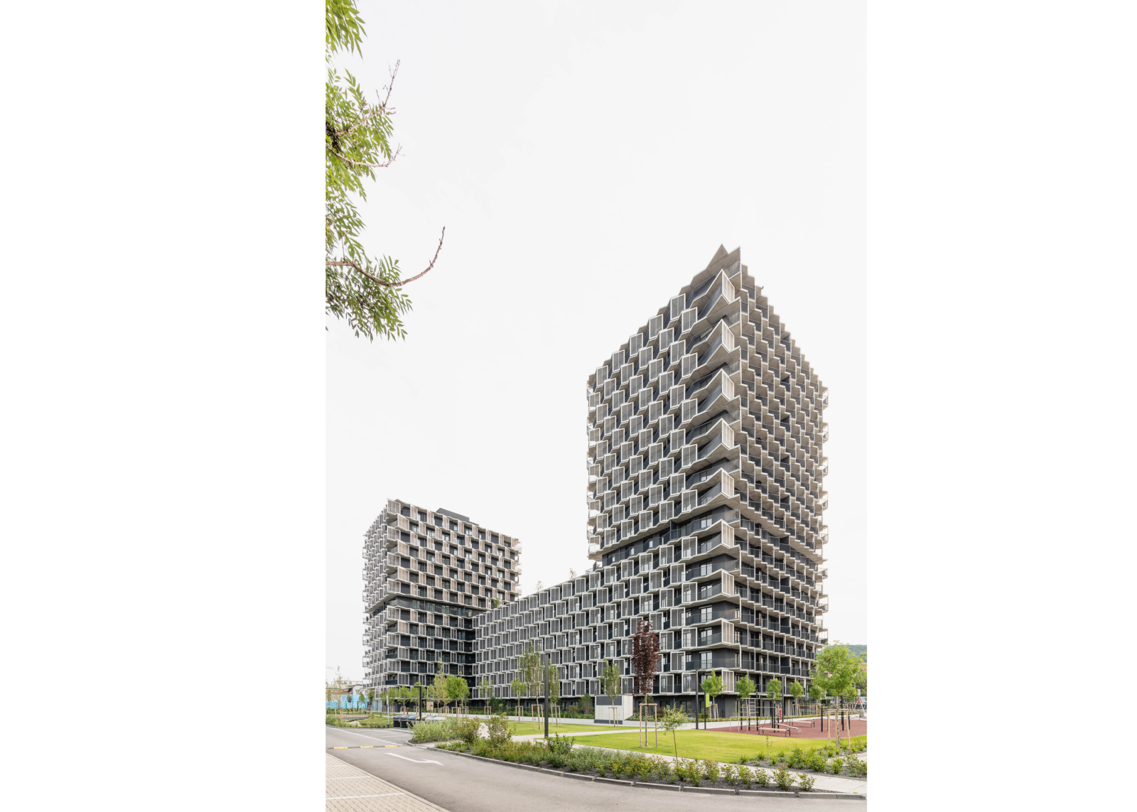 A projekt egy 20 emeletes északi és egy 17 emeletes déli toronyból áll, amelyek között egy nyolc emelet magas összekötő épület található. Az AllesWirdGut vezető tervező építészként a lakások tervezése mellett – a kisebb egységektől a családi lakásokon át a teraszos penthouse lakásokig – a homlokzati kialakításra összpontosította figyelmét, és jellegzetes kocka alakú loggiákkal bontotta meg a homlokzat képét. A háromdimenziós buborékszerű épületréteg további szabadtéri alapterületet biztosít, és védelmet nyújt a nap, a szél és az eső ellen.