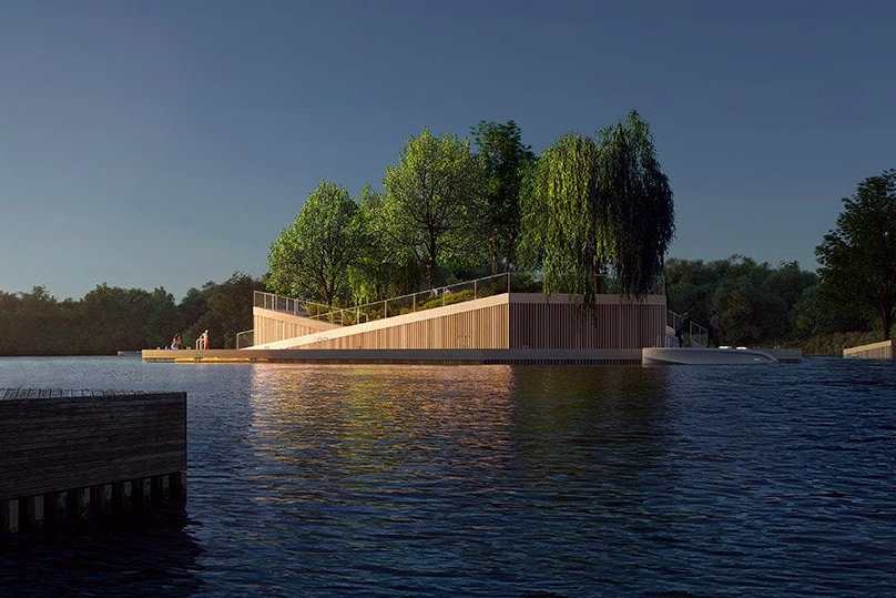 A legnagyobb szigeten egy magasan fekvő amfiteátrumot alakítanának ki, amely egyedülálló helyszínt biztosítana előadások és nyilvános rendezvények számára. A kisebb szigeteket a tófenékhez rögzítenék, de egy korlátozott sugarú körben szabadon sodródhatnának, festői piknikezőhelyek és privát összejövetelek helyszíneként.