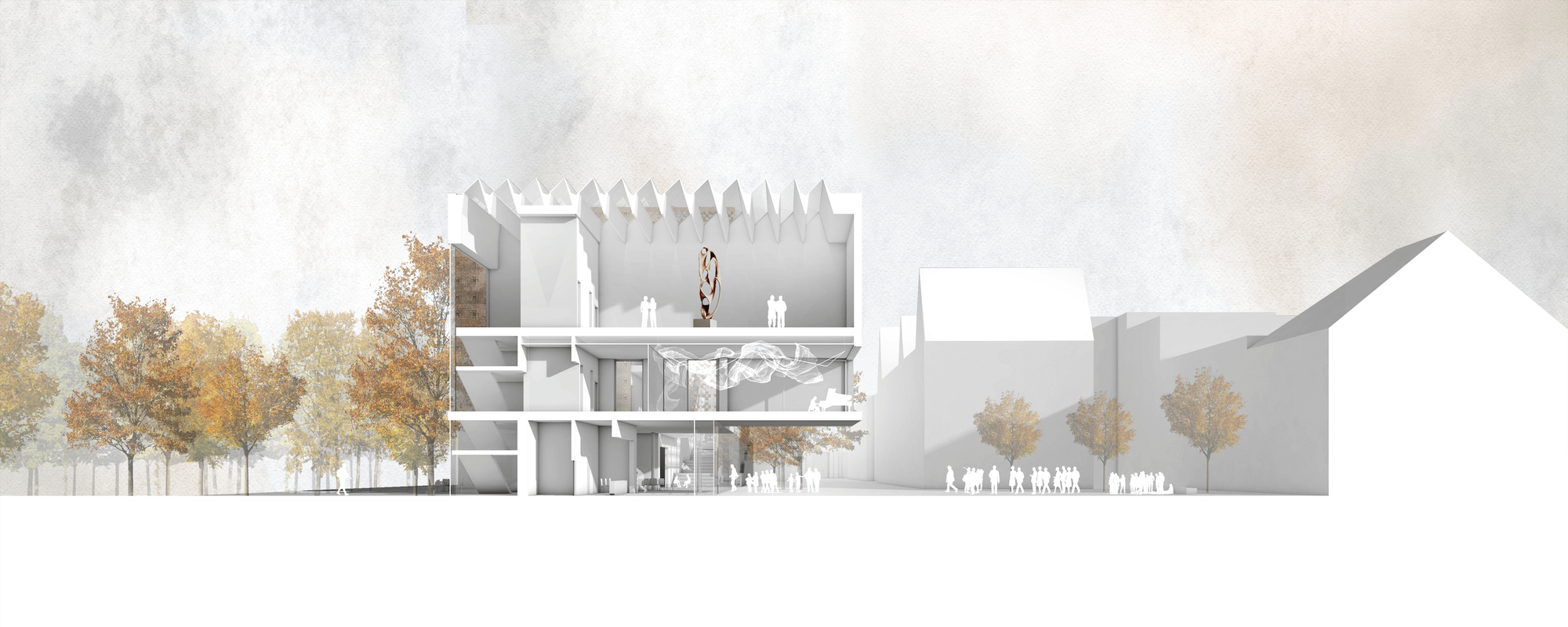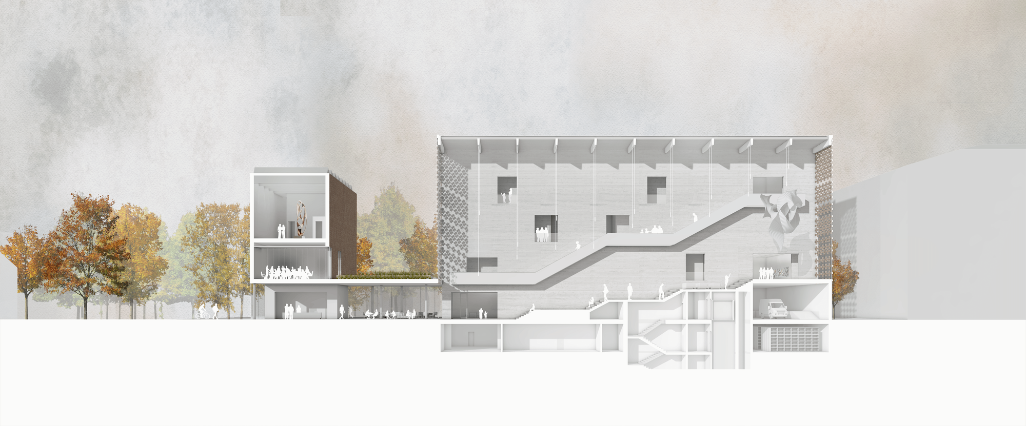 Tervünkben a múzeum alapfunkcióját jelentő kiállítások befelé forduló, a művekre koncentráló terekben kapnak helyet. Ezek képezik tervünk hagyományos részét, a helyi tradícióknak megfelelő súlyos tömbszerű terekben helyeztük el őket. A kortárs funkciók helyeit, a publikus tereket a kiállítóterek és a városi terek között alakítottuk ki, mindkettővel több ponton összekapcsolódva. A kortárs funkciók kapcsolatot hoznak létre a múzeum és a város között, a publikus terek és a kiállító terek között, a művészet és a látogatók között.