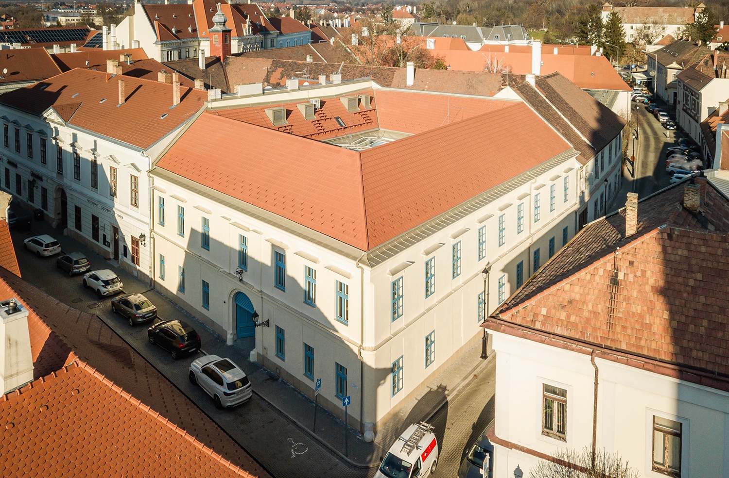 Sajnos a Scholae Piae nagyszabású tervei és új helyre való elköltözése nem tudott megvalósulni, de az iskolában tanuló és tanító közösség gyarapodása szükségessé tette a bővülést, téri megújulást és egyben talán előrevetíti a meglévő teljes iskolai tömb ütemezett megújítását is. A folyamat kezdő lépéseként a frissen átadott gimnáziumi épületrész valósult meg, melybe a közösségi tervezés folyamatában felhalmozott tudás mélyen beépült. A levéltár helyi védelem alatt álló egyemeletes sarokházának lényegi átalakulásáról kívülről szinte csak az égszínkék kapu és ablakok árulkodnak.
